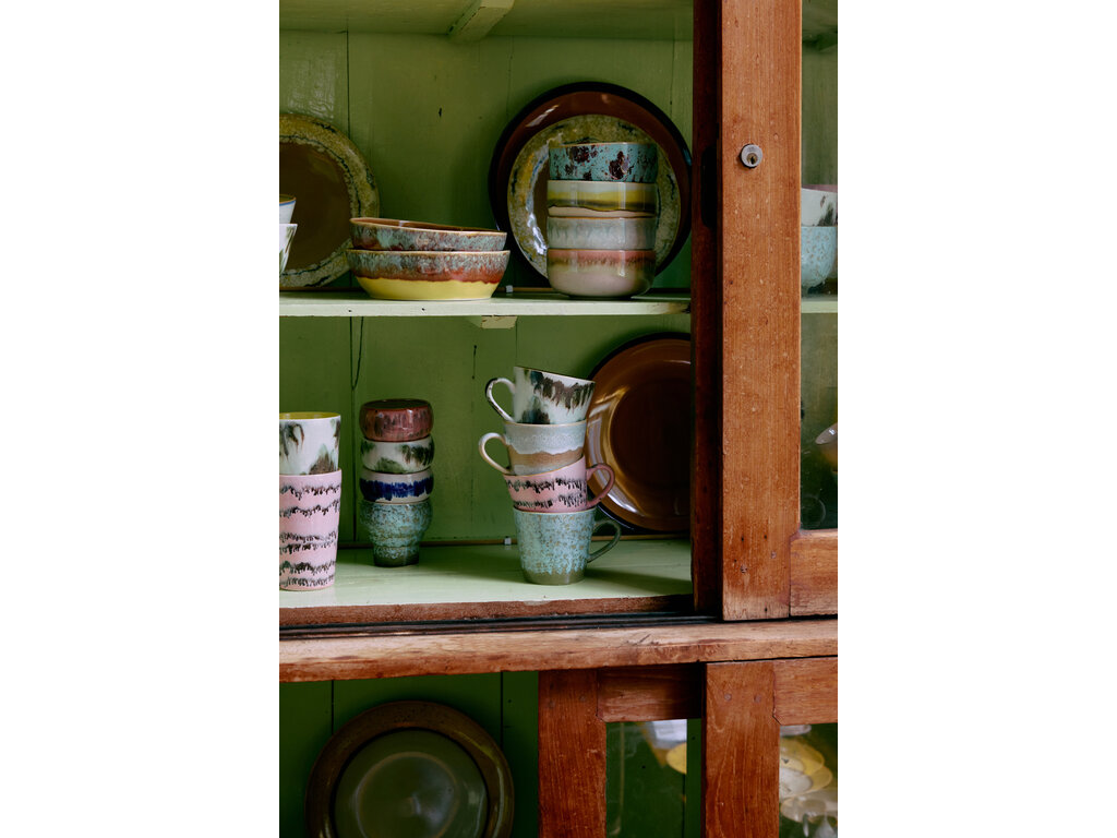 Een vleugje kunst bij elke slok. De 70s Ceramics collectie is geïnspireerd op decennia aan kunststijlen – van popart tot surrealisme en abstracte expressie. Elke mok is uniek, met opvallende kleurencombinaties en een geglazuurde afwerking die het geheel een handgemaakte, creatieve uitstraling geeft.