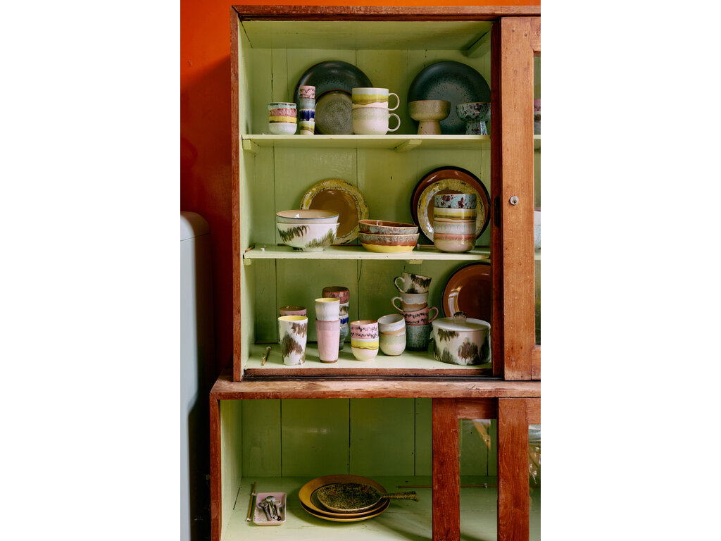 Lang, stijlvol en perfect voor lagen van melk en schuim. De 70s Ceramics collectie is geïnspireerd door decennia aan kunststromingen – van popart en surrealisme tot expressionisme en abstracte vormen. Elke mok is uniek, met een mix van gedurfde kleuren en geglazuurde texturen die een handgemaakte, creatieve uitstraling geven.
