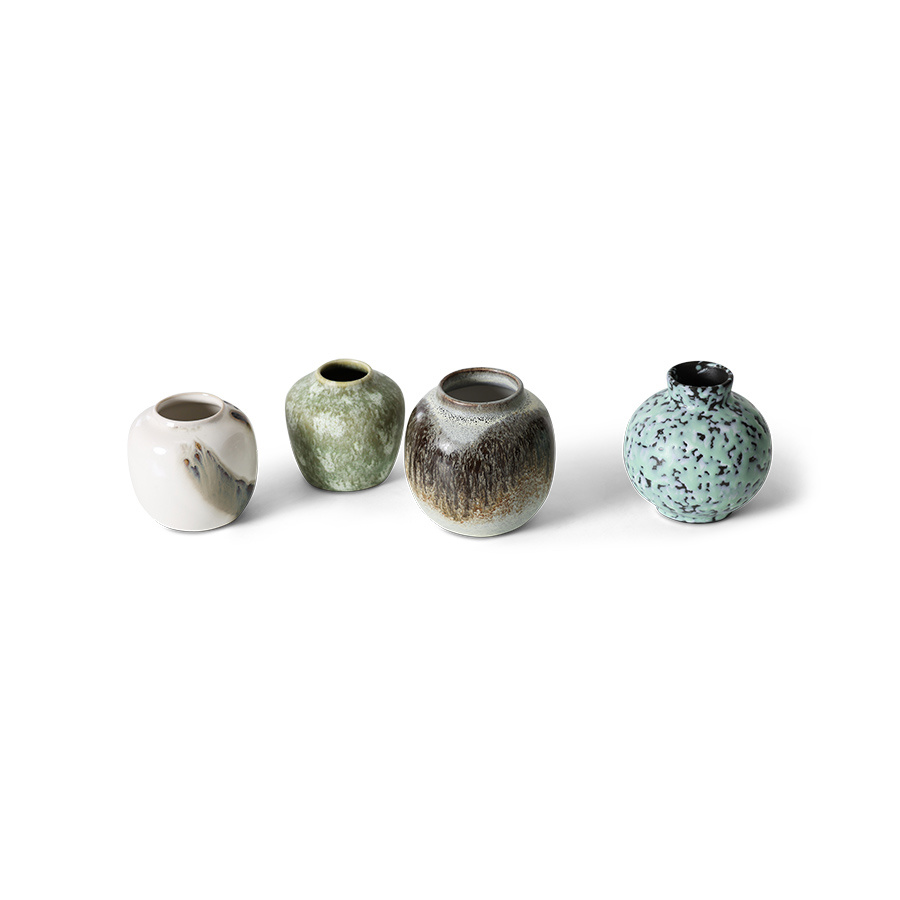 Account aanmakenVoeg een vleugje retro charme toe aan je huis met deze set van 4 keramische vazen, een favoriet in onze iconische jaren 70 keramiek collectie. Elke vaas heeft een unieke vorm en met de hand afgewerkt glazuur, waardoor elk stuk echt uniek is. Perfect voor het uitstallen van enkele stelen of gewoon als decoratief accent, biedt deze set eindeloze stylingmogelijkheden en brengt kleur en karakter in elk interieur.