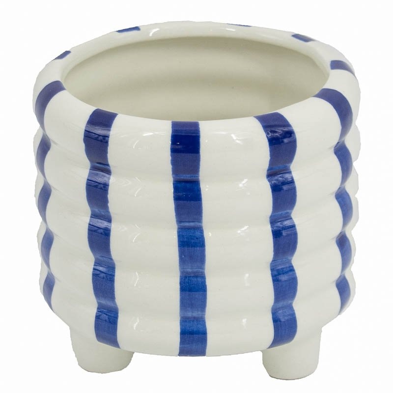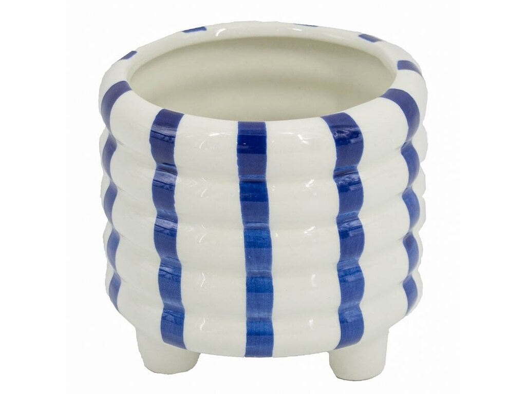 Beoordeel Aardewerk bloempotje stripe dark blue