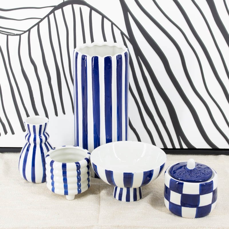 Account aanmakenOp zoek naar een stijlvolle bloempot, een decoratieve pot voor kunstplanten, of gewoon een op zichzelf staand decoratiestuk? Met deze toffe aardewerk pot stripe dark blue is jouw lijstje in één keer afgevinkt!
