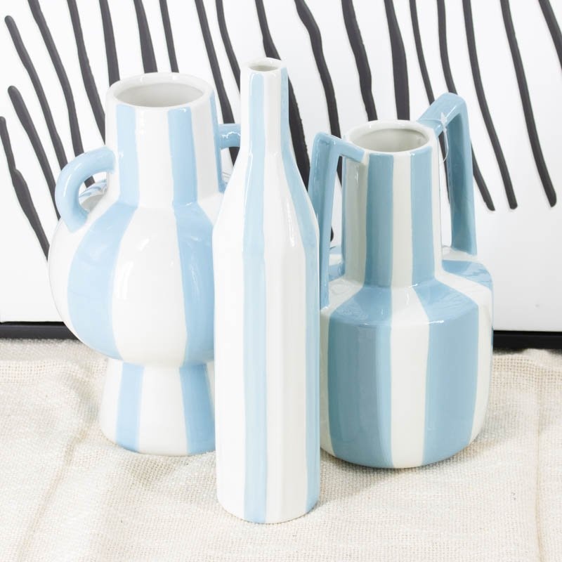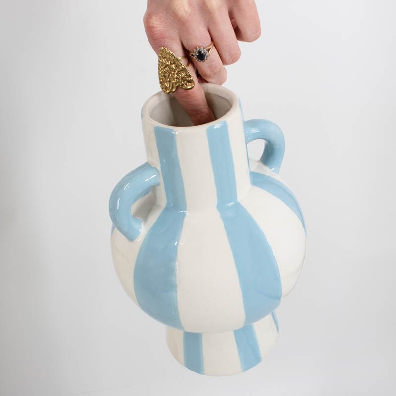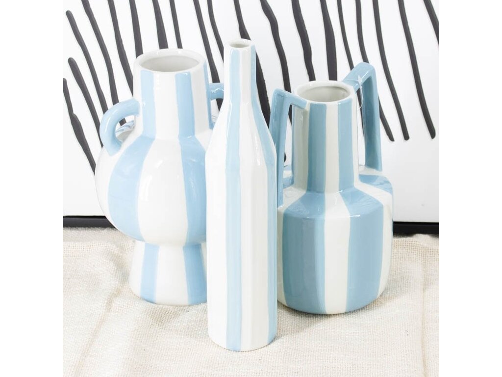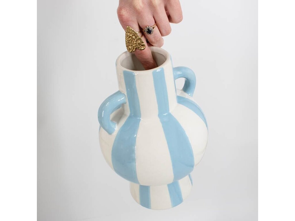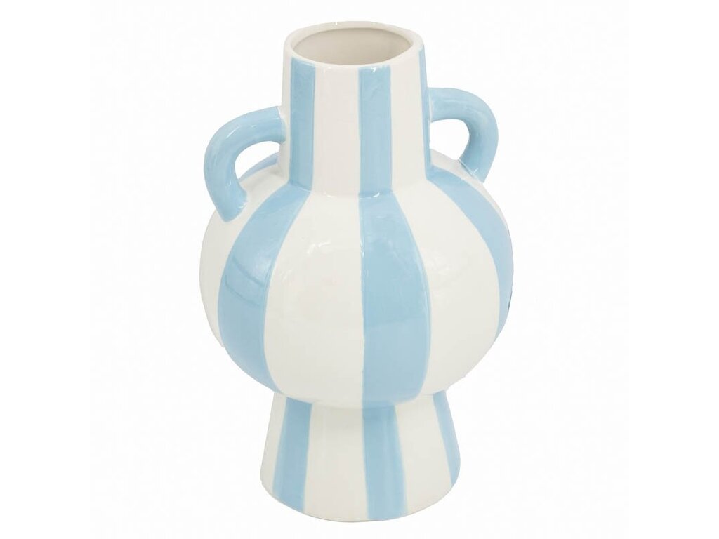 Beoordeel Aardewerk vaas met oren stripe light blue
