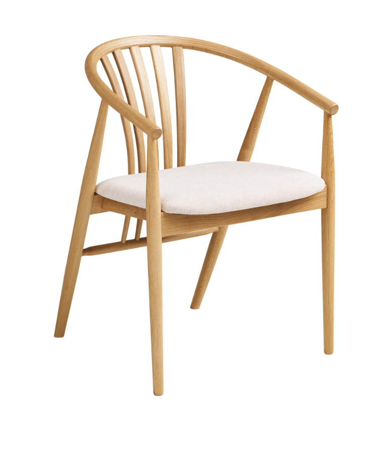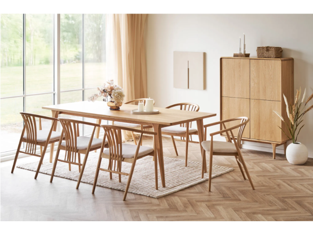 Geef je eetruimte een natuurlijke en stijlvolle uitstraling met deze prachtige eetkamerstoel in de kleur Natural. De combinatie van een massief eikenhouten frame en een zachte, duurzame bekleding zorgt voor zowel comfort als een verfijnde look die moeiteloos in elk interieur past.