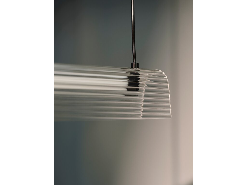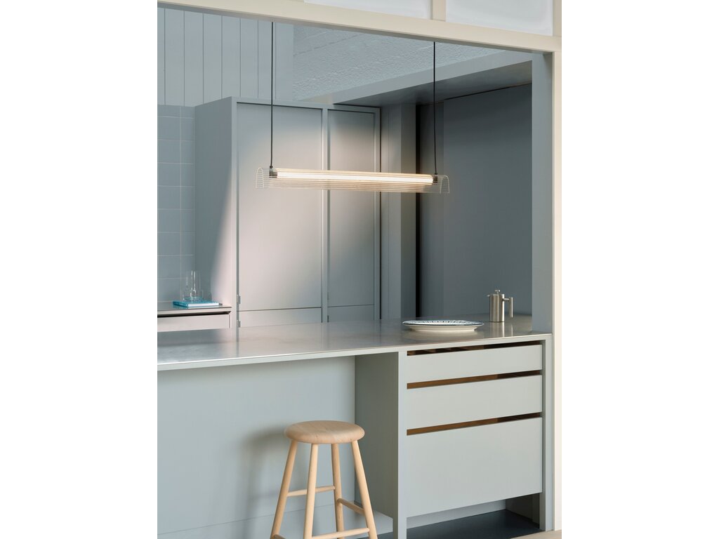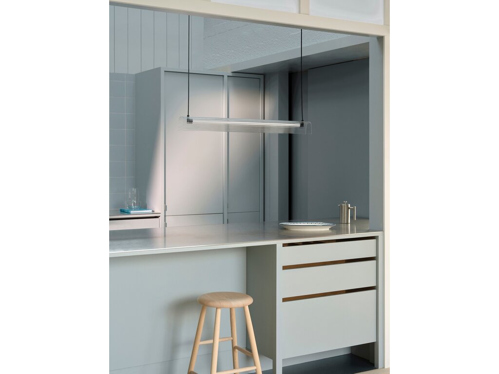 De Aliani hanglamp combineert een moderne, minimalistische uitstraling met verfijnde details. De geribbelde acryl kap zorgt voor extra structuur en een subtiel spel van licht, waardoor elke ruimte meteen meer karakter krijgt. Dankzij het slanke ontwerp is deze lamp perfect boven een eettafel of keukeneiland: stijlvol aanwezig zonder visueel te overheersen.