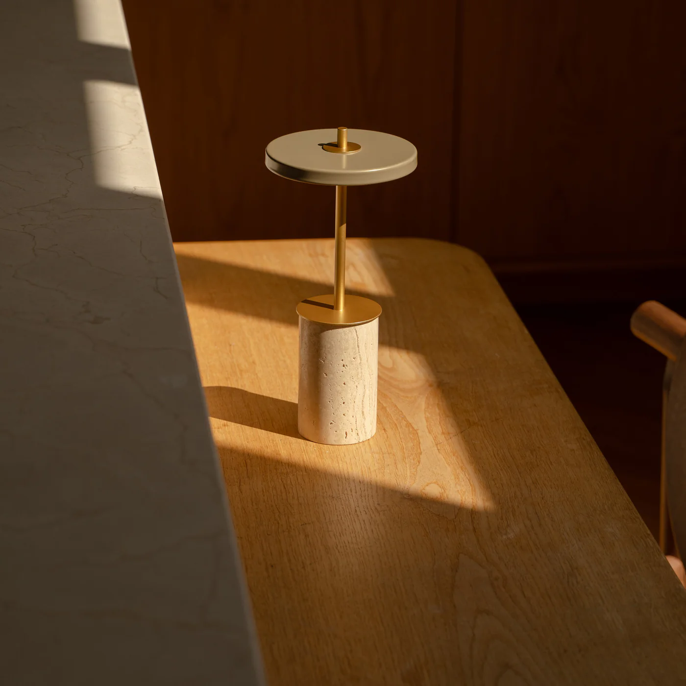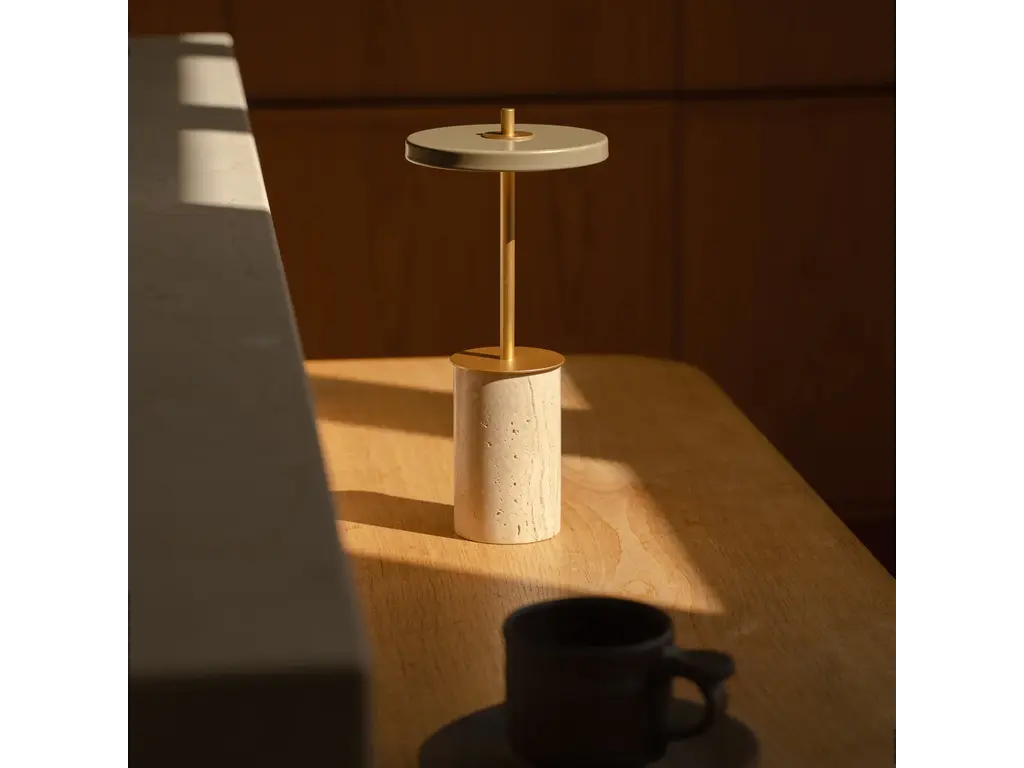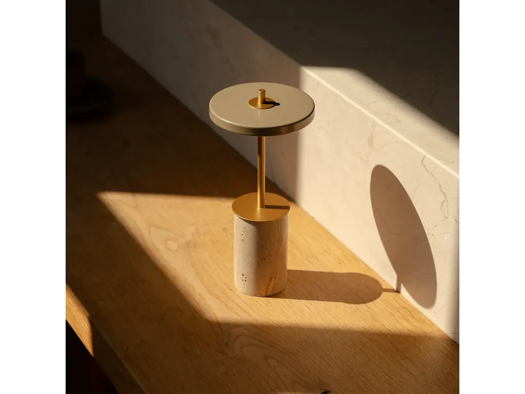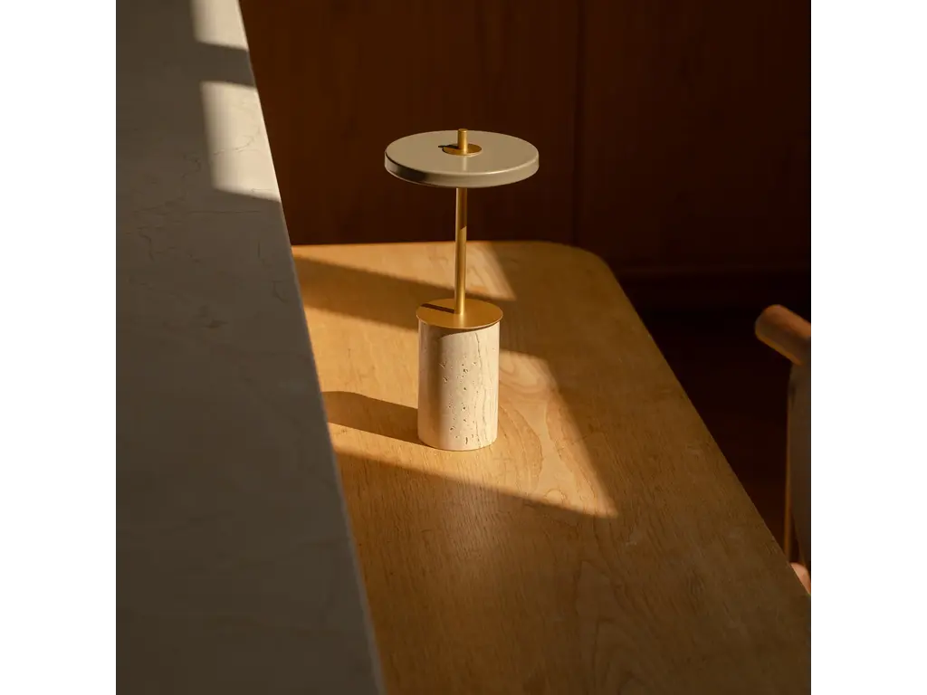 De elegante uitstraling wordt versterkt door de verwisselbare massief marmeren voet, die een luxueuze en unieke touch toevoegt. Met een zachte aanraking op de voet schakel je eenvoudig tussen vier lichtstanden, zodat je altijd de juiste sfeer creëert – van helder functioneel licht tot subtiele, warme gloed.