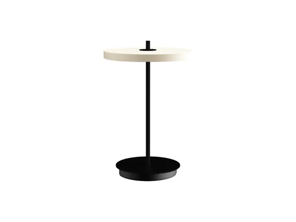 Asteria Move heeft vier lichtintensiteitniveaus die kunnen worden aangepast door op de knop van de lampvoet te drukken. De batterij gaat tot 35 uur mee en kan eenvoudig worden opgeladen door hem op een Qi-oplaadpunt te plaatsen, zoals de Unifier uit de UMAGE collectie verlichtingsaccessoires of met de meegeleverde USB-kabel.