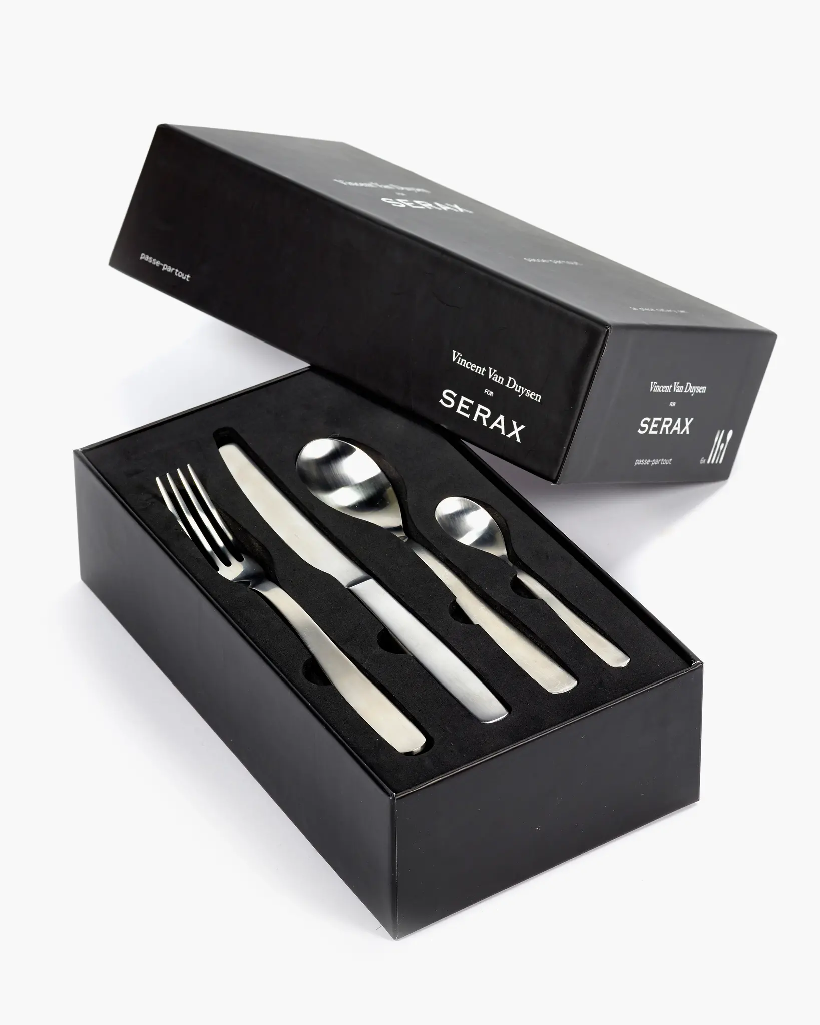 Account aanmakenDeze bestekset is niet alleen strak en minimalistisch van ontwerp, maar wordt ook nog eens geleverd in een handige cadeauverpakking. Het bestek is vervaardigd van hoogwaardig roestvrij staal en maakt deel uit van de Passe-partout collectie, ontworpen door Vincent Van Duysen.
