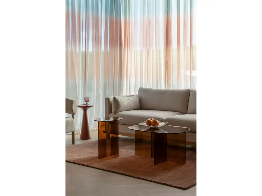 Account aanmakenStrak, licht en verrassend aanwezig: de Linea serie speelt slim met transparantie. Deze salon- en bijzettafel zijn namelijk gemaakt van sterk glas. Hierdoor hebben ze een luchtige uitstraling en brengen ze sfeer, zonder dat het te vol aanvoelt. Toch springen deze meubels wel direct in het oog. Het design met gekruiste panelen geeft namelijk een mooi grafisch lijnenspel. Dit zorgt samen met het ovalen tafelblad voor een look die zowel modern als tijdloos is.