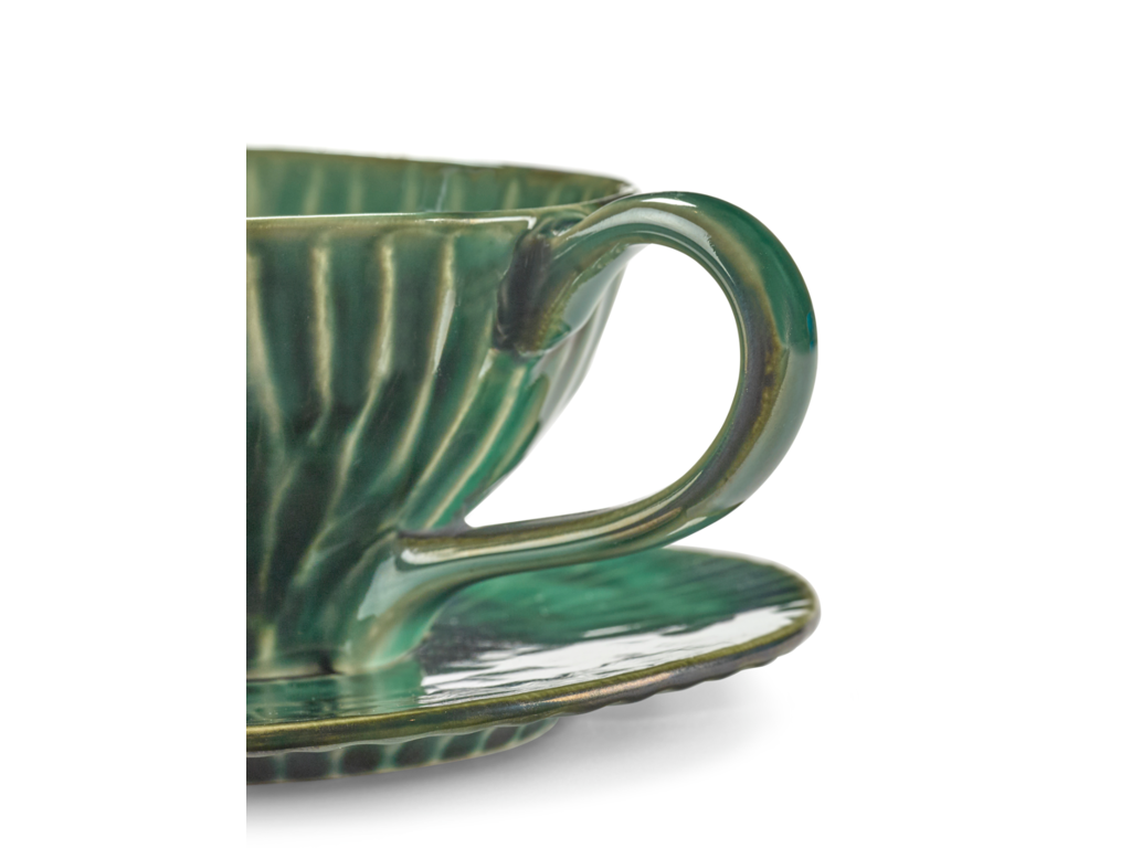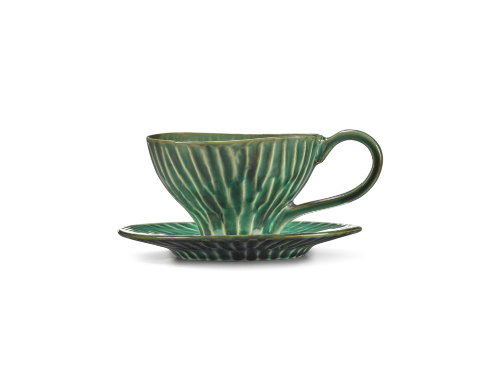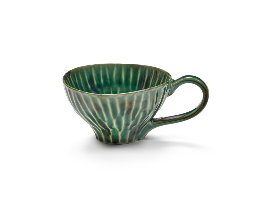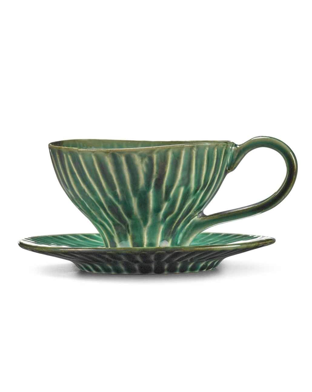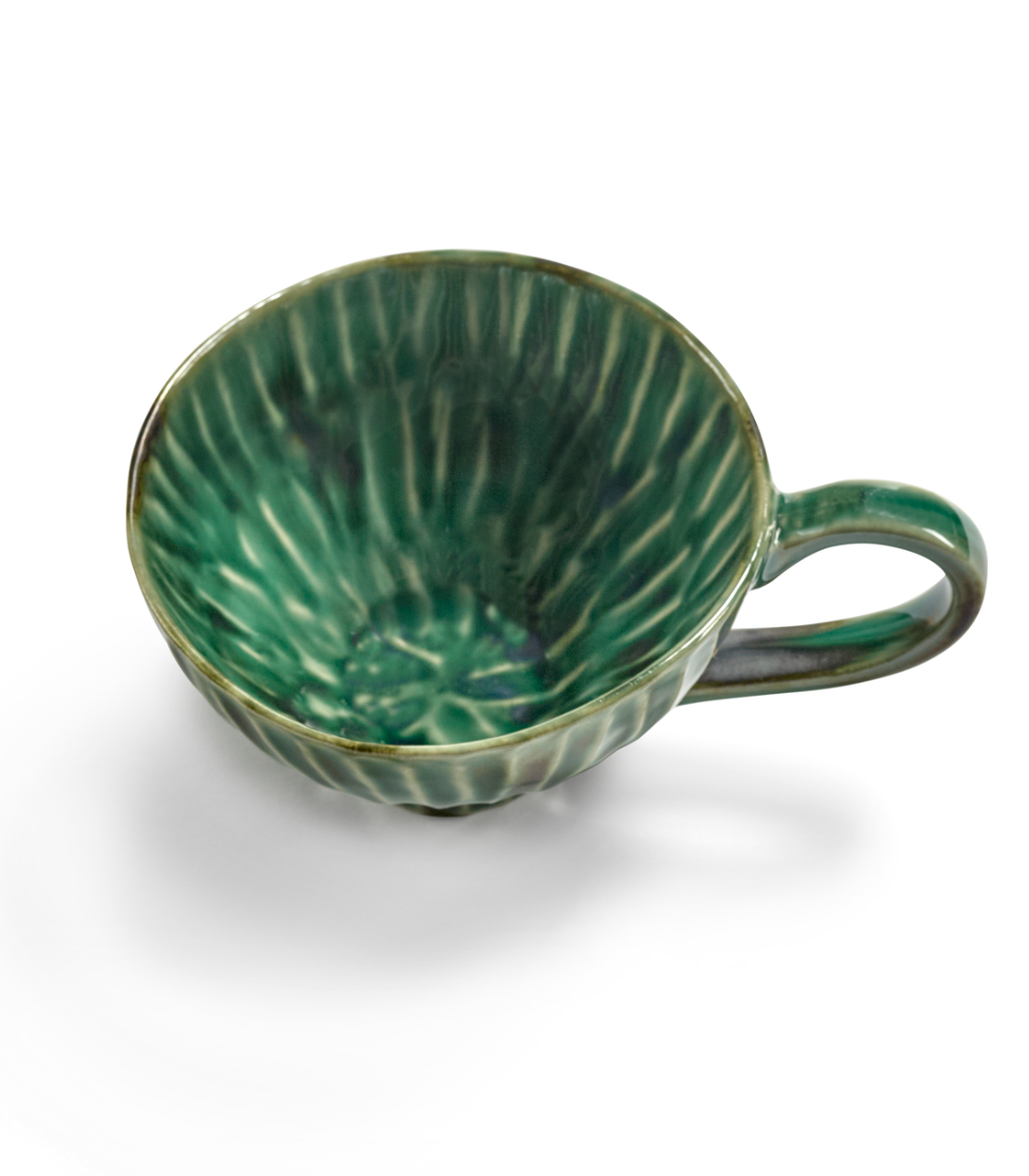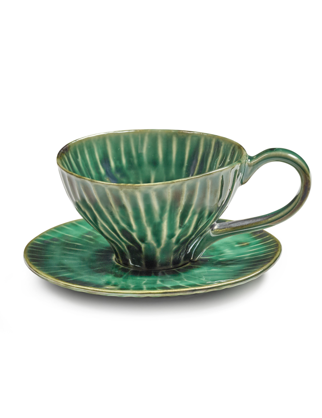 De naam verwijst naar Lanzarote, het eiland waar Pascale vaak verblijft. Ze liet zich inspireren door het typische zonverbleekte groen van houten deuren en ramen, en het weinige groen dat fel contrasteert met het zwarte, bijna buitenaardse landschap. Die unieke kleur, die prachtig combineert met alles wat lekker is, komt nog meer tot leven door de schelpachtige textuur die Pascale met haar vingers aanbracht.