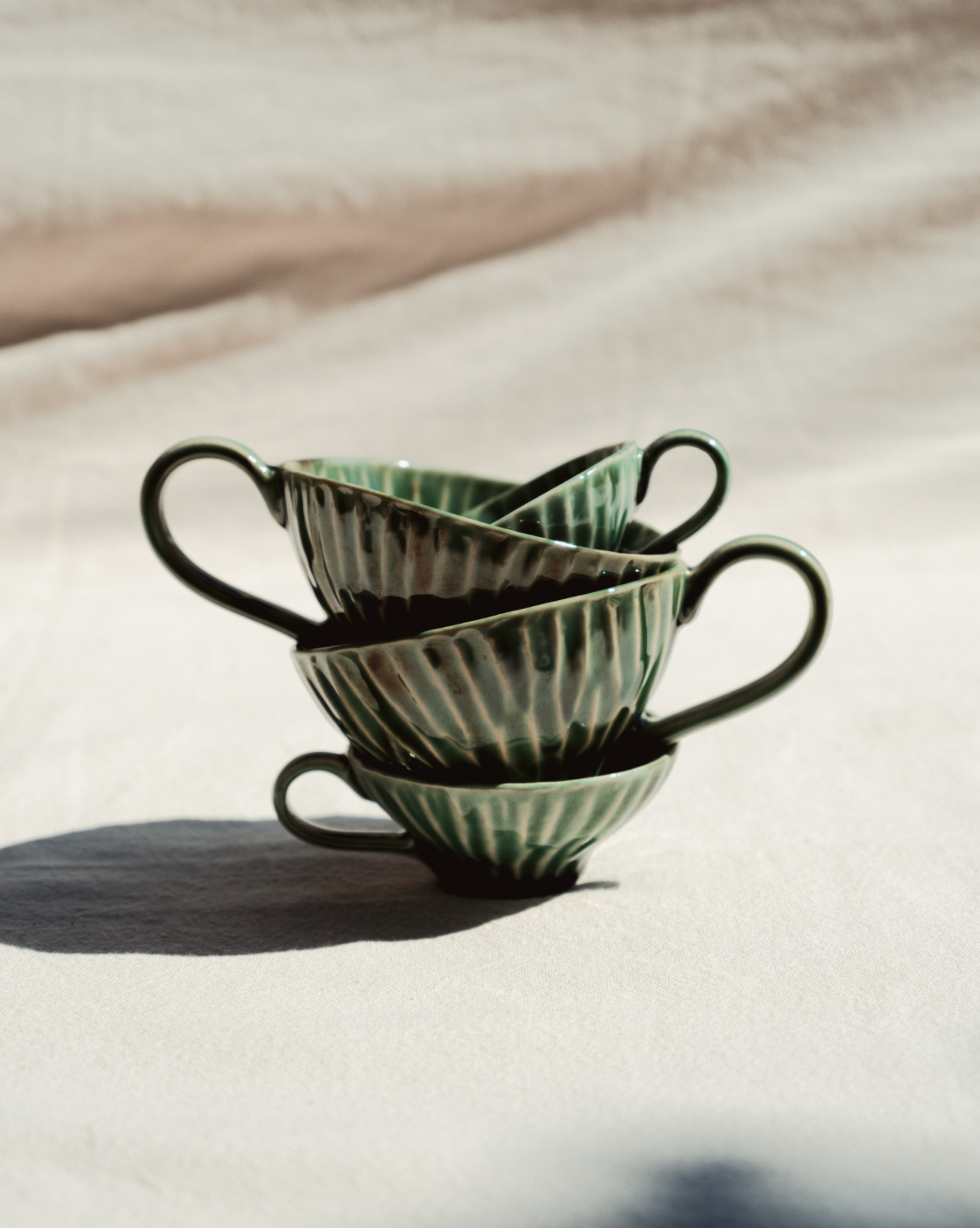 Voor haar nieuwste boek ‘Eén Pan’ keerde Pascale Naessens niet alleen terug naar de schrijftafel, maar ook naar haar vertrouwde keramiekatelier. Het resultaat: de exclusieve ‘Verde Lanza’ collectie, met de hand ontworpen door Pascale en nu exclusief geproduceerd door Serax.
