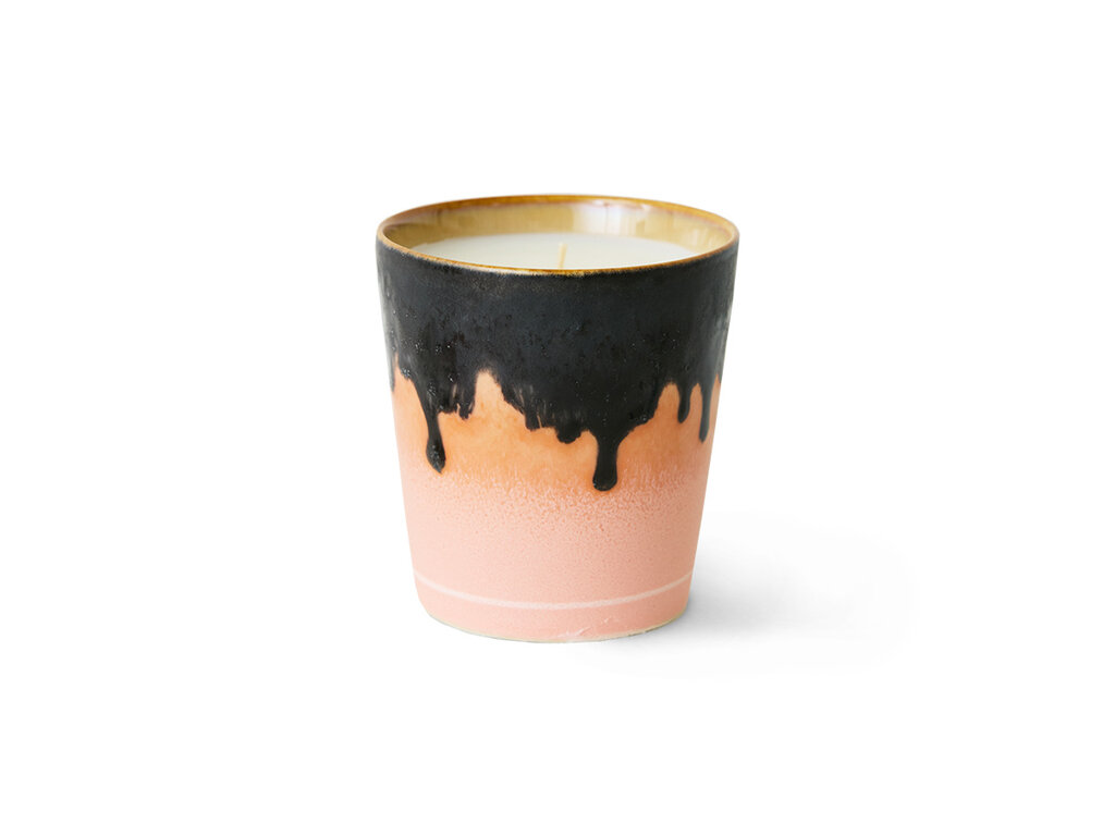 Gegoten in een iconische 70s ceramics koffiemok, die je na het branden opnieuw kunt gebruiken – als sfeervolle herinnering én als je nieuwe favoriete koffiemok.
