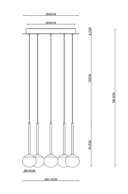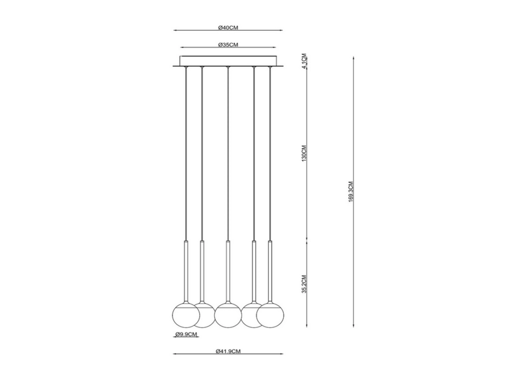 - Verbruik: 5x8,2W / 230V / Dimbaar (Lichtbronnen inbegrepen)