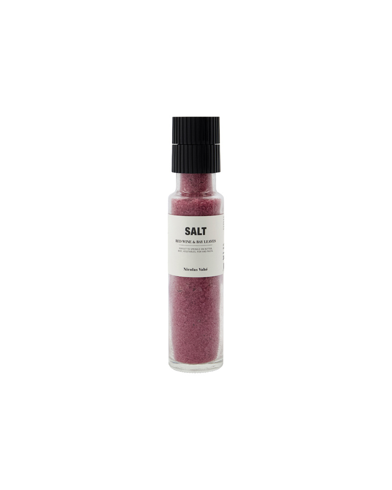 Bevat de volgende ingrediënten: Zout met rode wijn en laurierblaadjeszeezout 88% (antiklontermiddel E535), maïszetmeel, rode wijn 4% (Bevat sulfieten), aroma, hibiscuspoeder, laurierblaadjes mix.Kan sporen bevatten van noten, grondnoten, sesam, melk en mosterd.