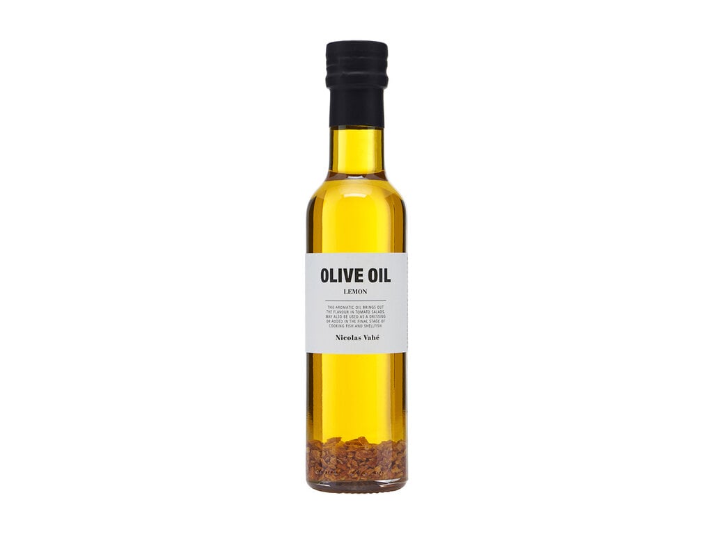 Bevat de volgende ingrediënten: Olijfolie met citroenschil en citroenaromaextra vierge olijfolie 92% herkomst: Spanje, citroenschil 8%, natuurlijk citroenaroma.Kan sporen bevatten van noten en sesam.