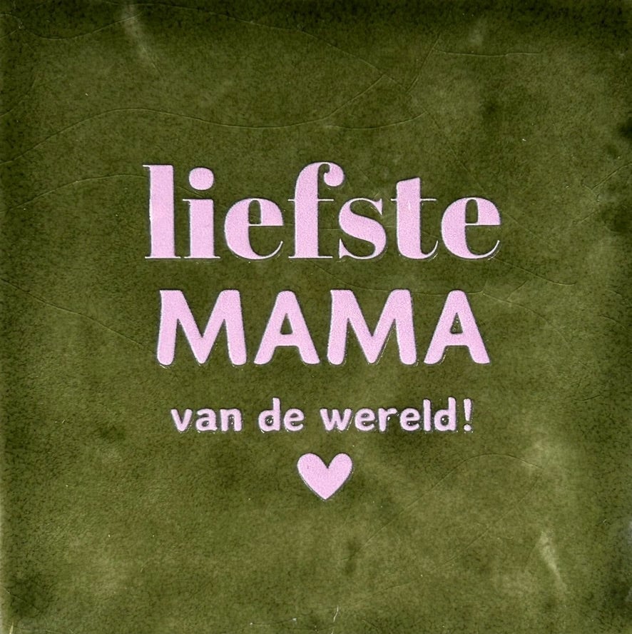 Beoordeel Tegeltje "Liefste mama vd wereld" olijf/babyroze