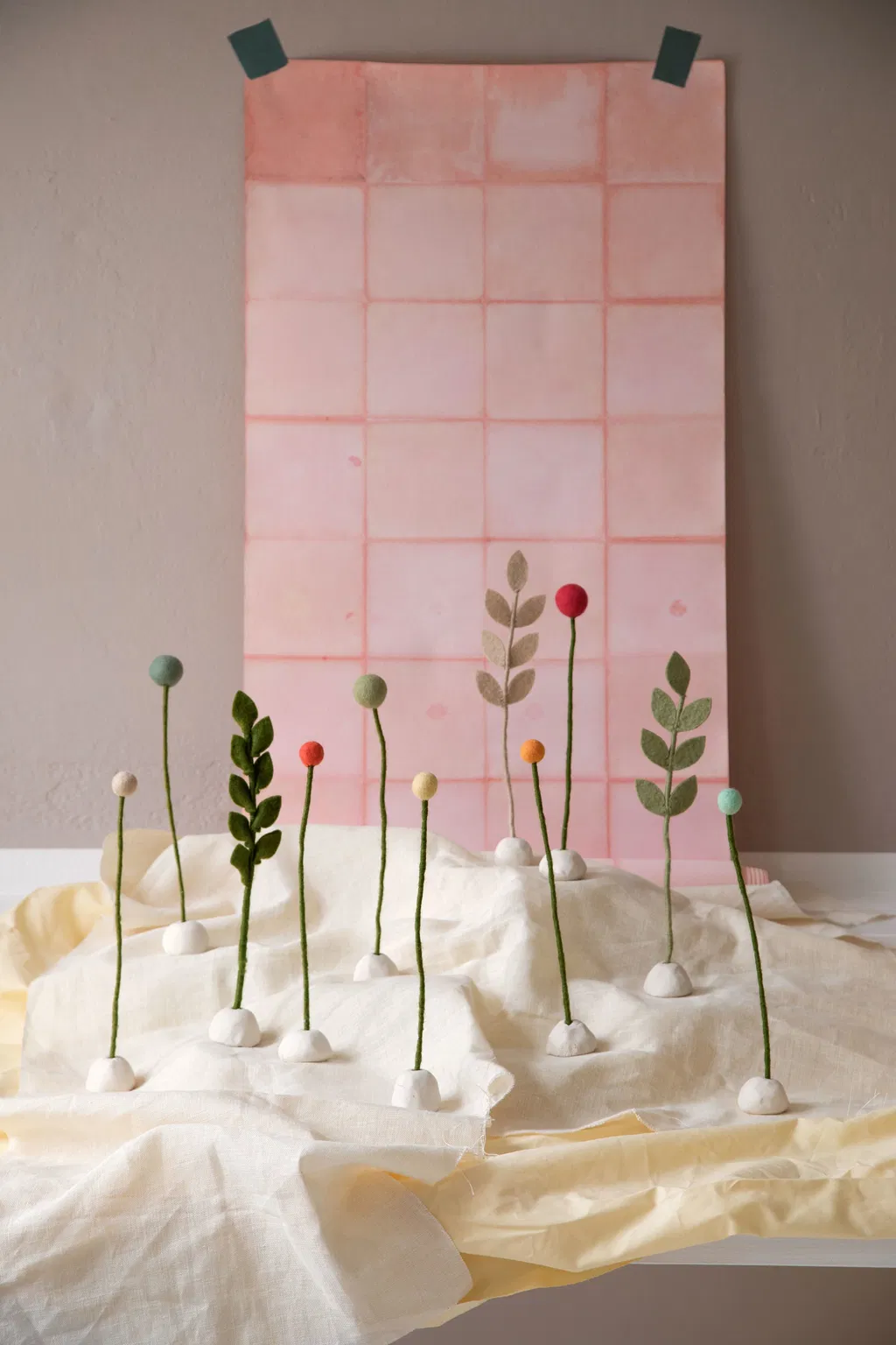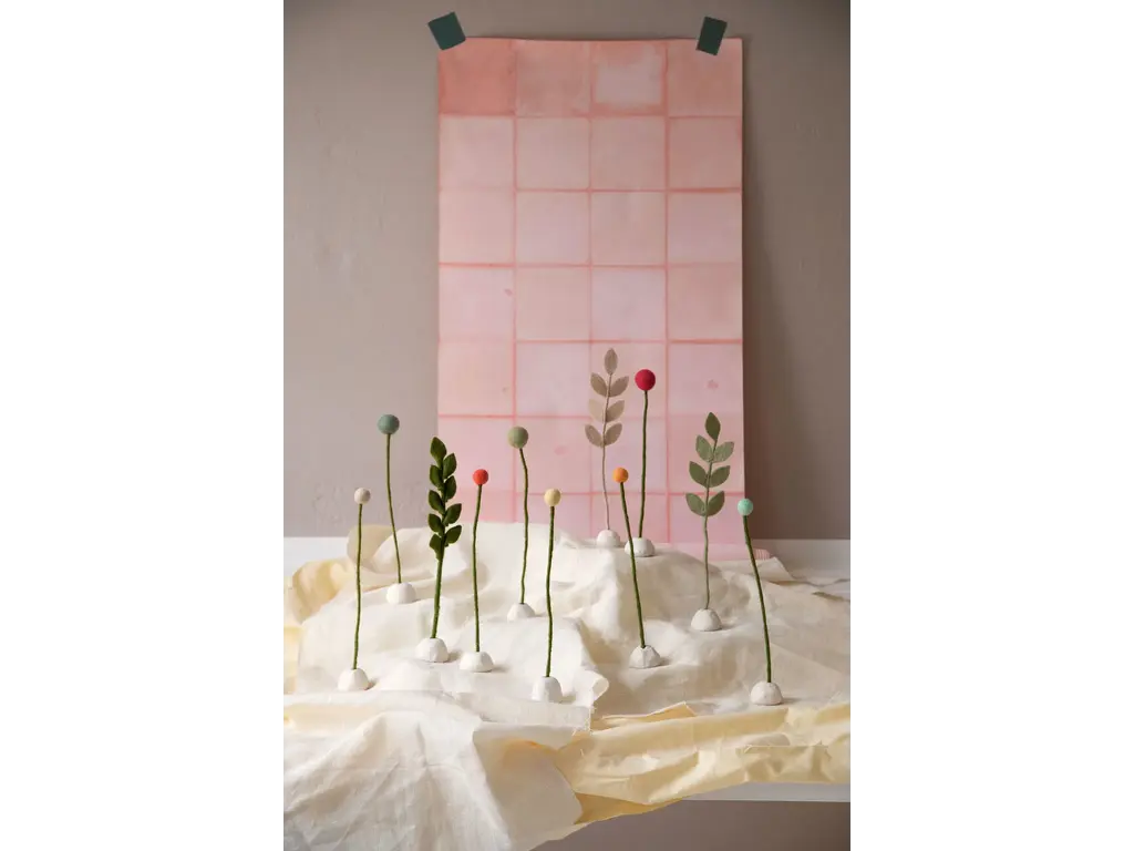Account aanmakenEen tak met bladeren in stoffig roos – met de hand gemaakt voor een zachte, rustieke uitstraling.