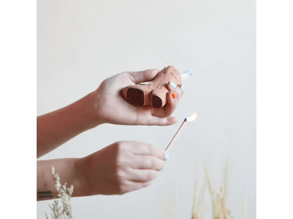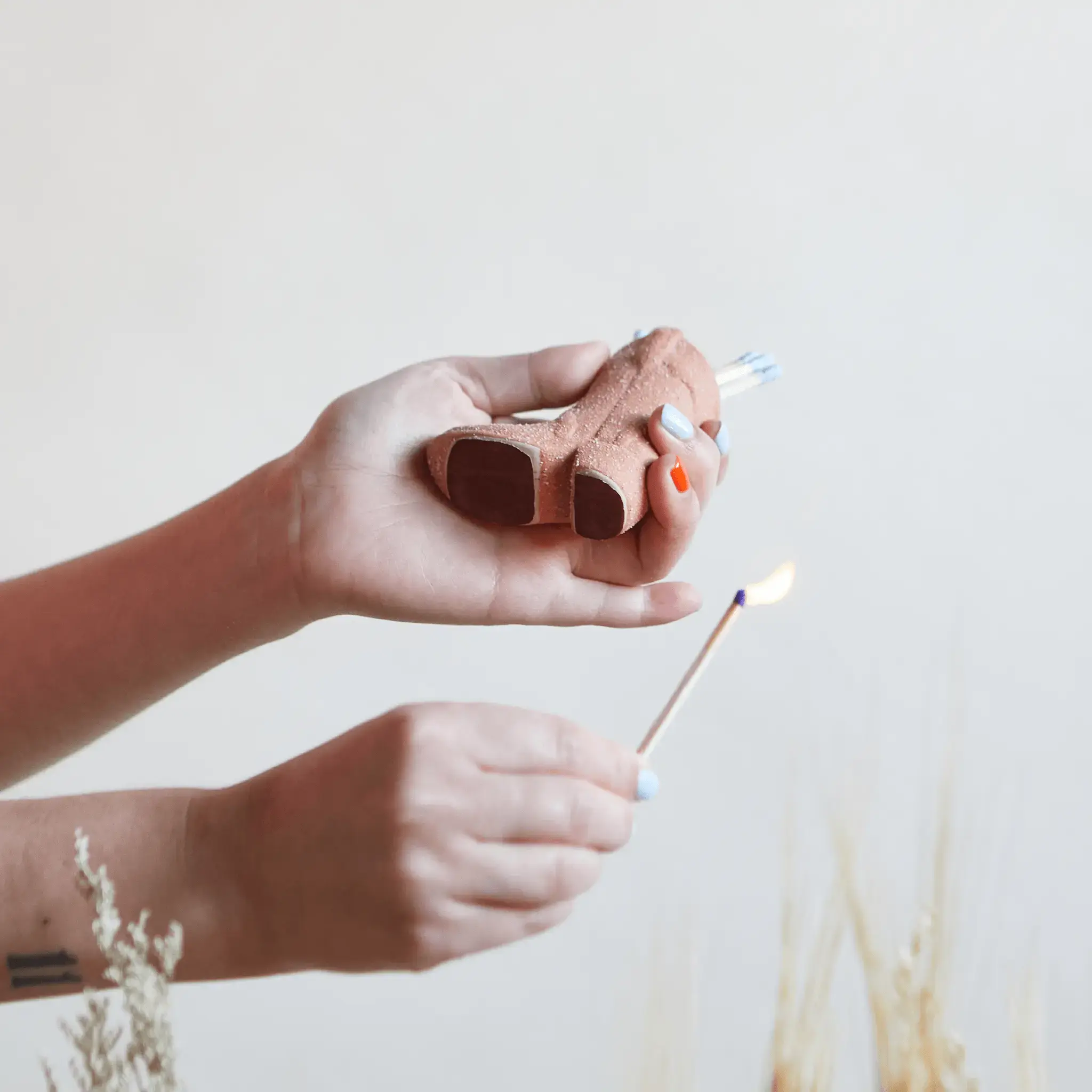 De laars bevat 25 roze veiligheidslucifers die eenvoudig kunnen worden aangestoken door ze langs de onderkant van de laars te strijken. Wanneer de lucifers op zijn, kan de houder opnieuw worden gebruikt met standaard lucifers dankzij het ruwe keramische oppervlak.