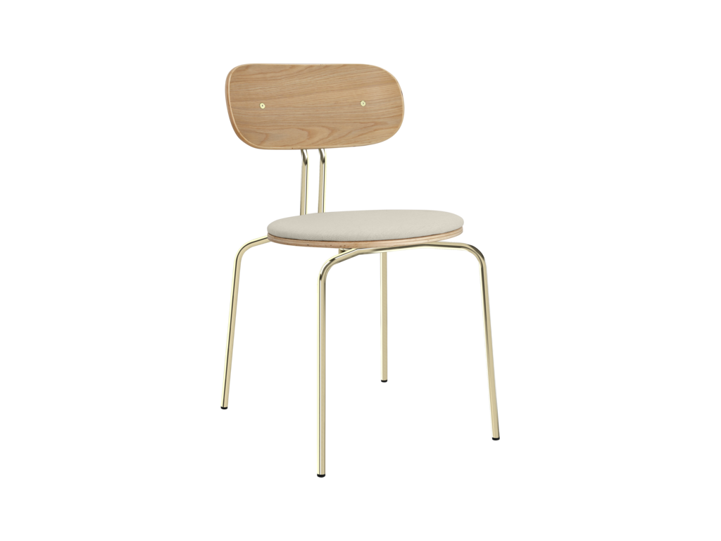 Curious is gemaakt van eikenfineer en is verkrijgbaar met messing en zwarte poten met de optie van een zitkussen om het comfort te verhogen. Het zitkussen is verkrijgbaar in 17 op maat gemaakte kleuren van de nieuwe 100% gerecyclede stof Horizons en in bruin of wit van onze stof Teddy Bear.