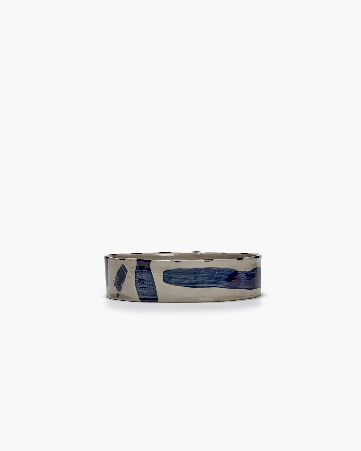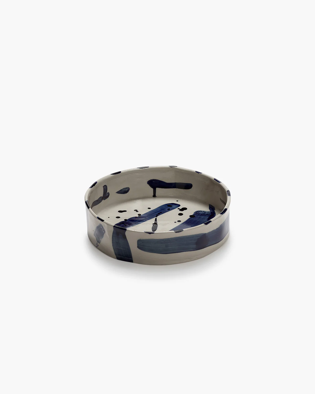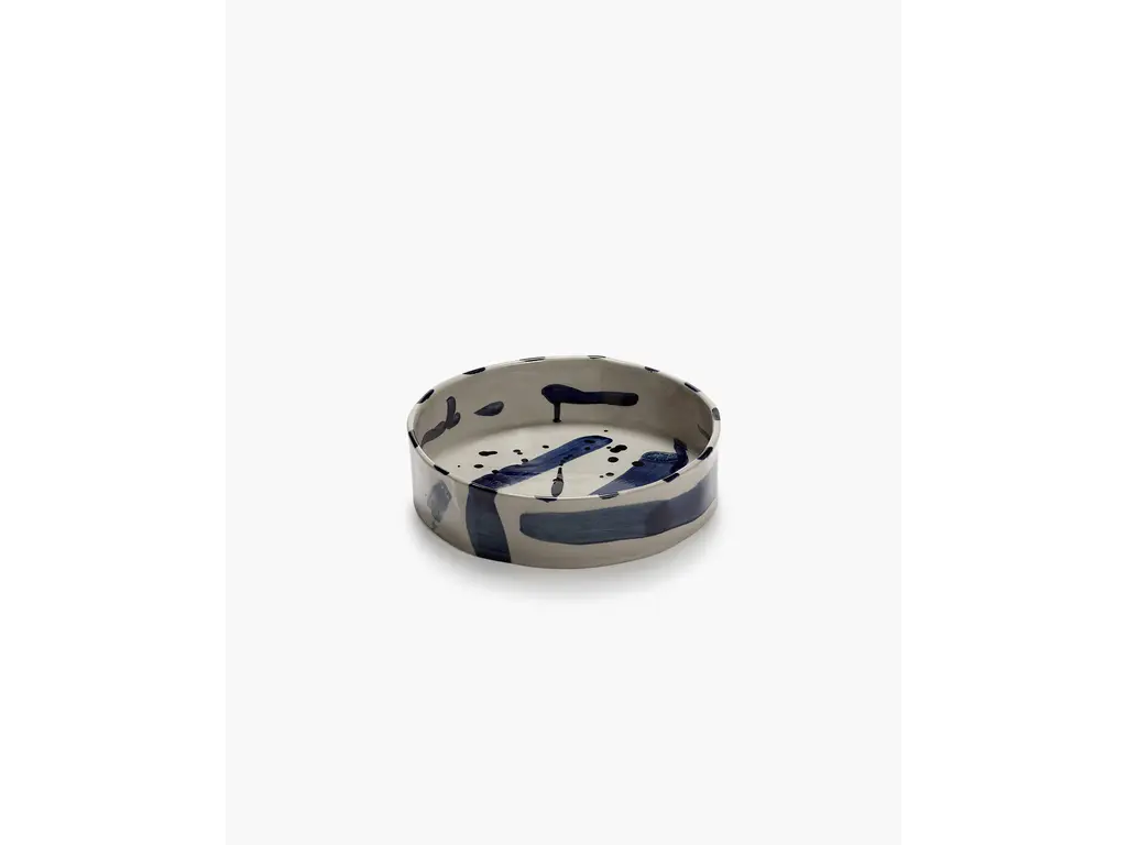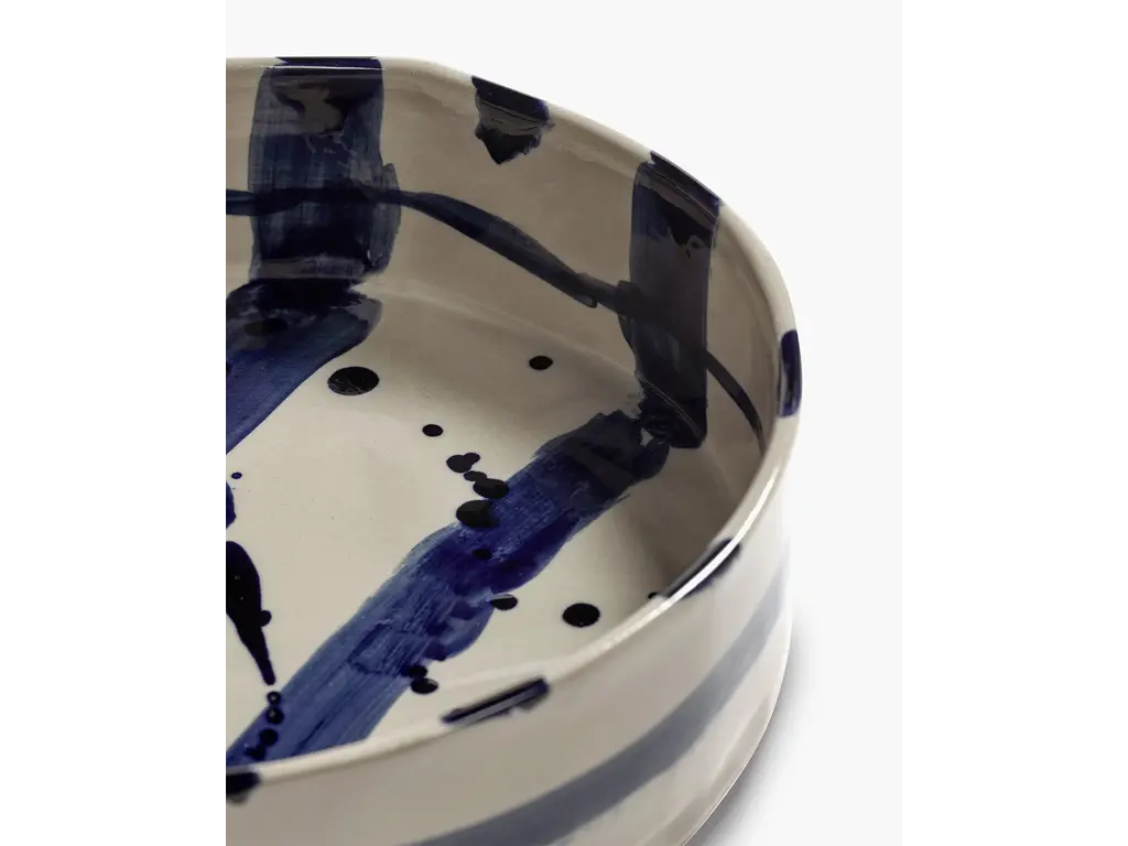 Account aanmakenDit diepe ronde serveerbord uit de Sophia-collectie is afgewerkt met expressieve blauwe penseelstreken op een beige oppervlak. De handgeschilderde decoratie en subtiele imperfecties geven elk keramisch serveerbord een uniek karakter. Ideaal voor gerechten om te delen aan tafel.