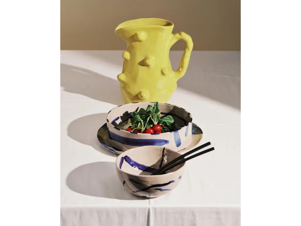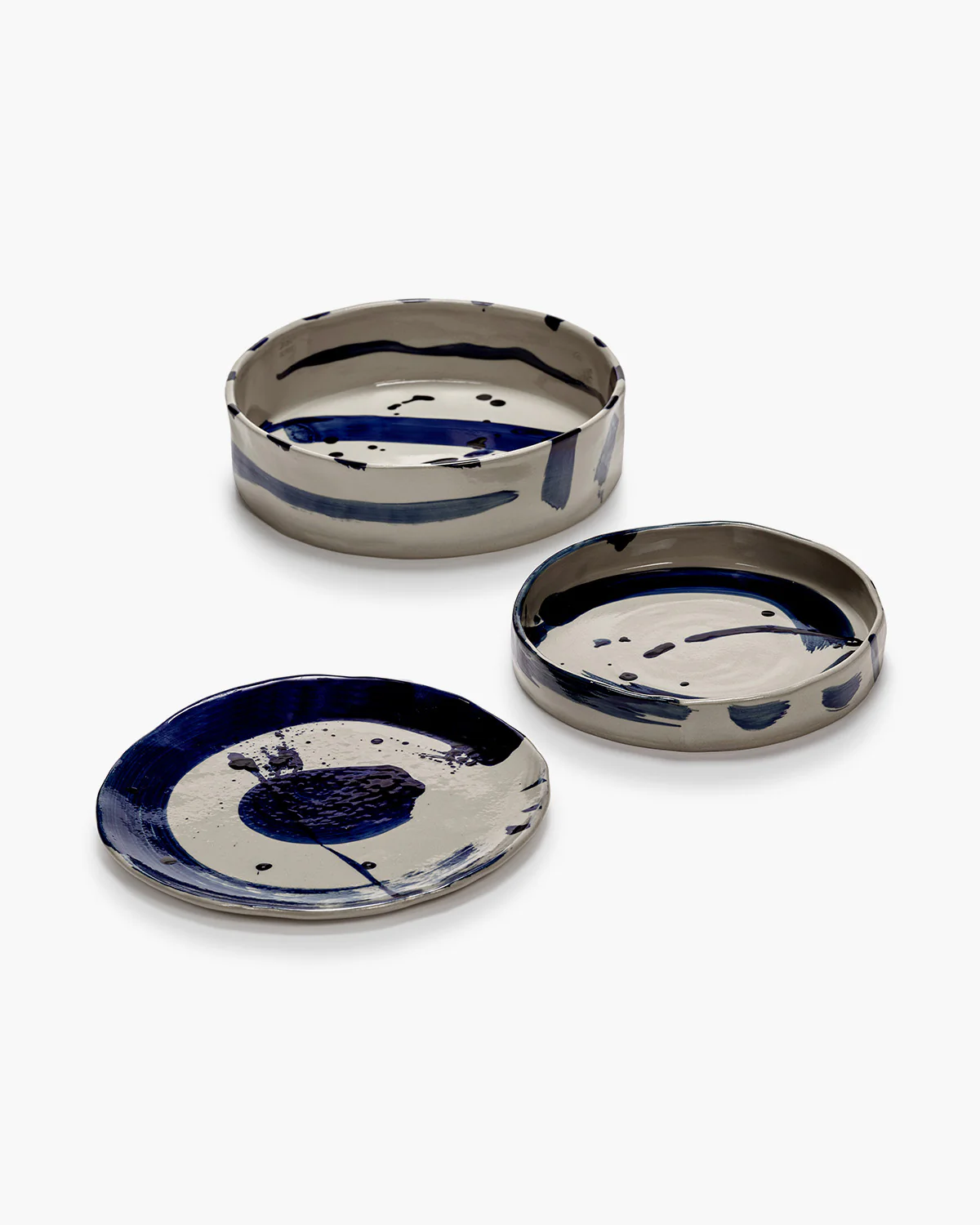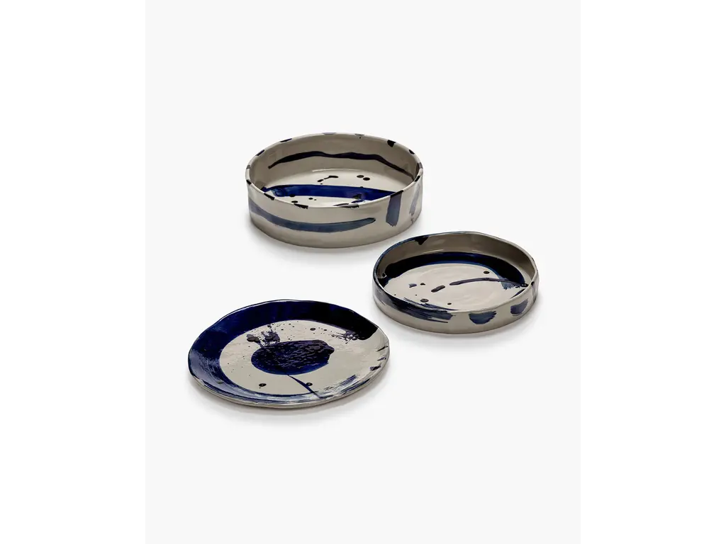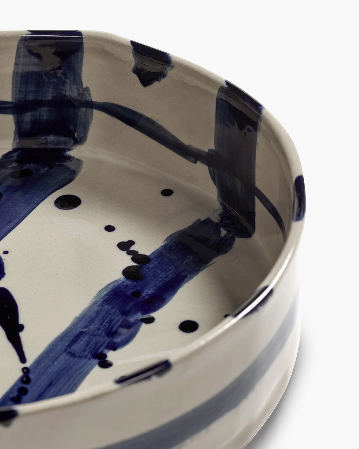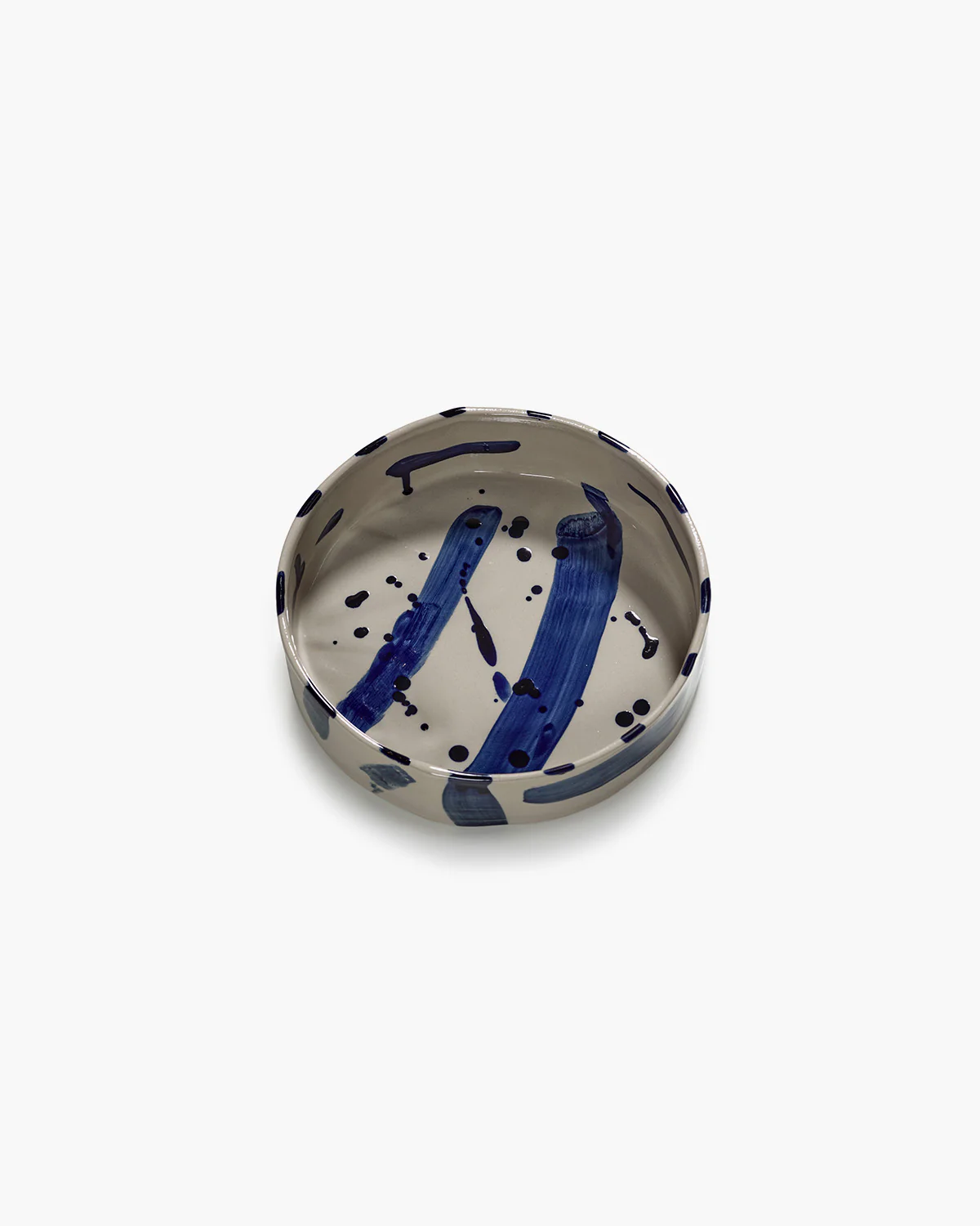 Account aanmakenDit diepe ronde serveerbord uit de Sophia-collectie is afgewerkt met expressieve blauwe penseelstreken op een beige oppervlak. De handgeschilderde decoratie en subtiele imperfecties geven elk keramisch serveerbord een uniek karakter. Ideaal voor gerechten om te delen aan tafel.