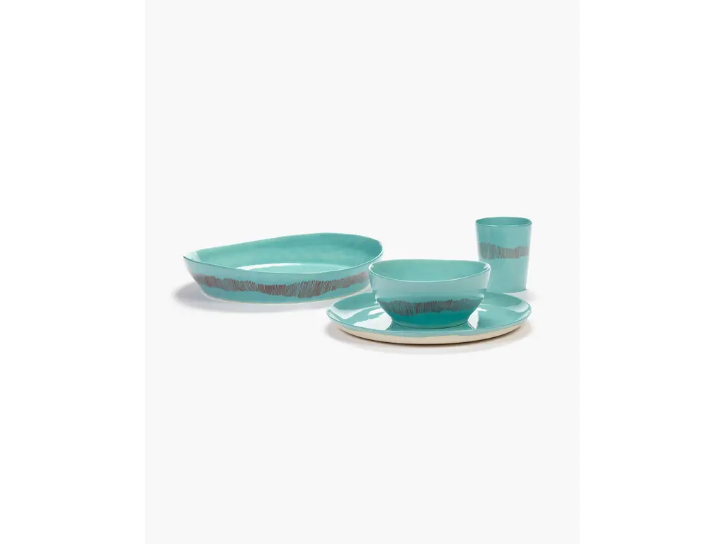 Dit bord in een frisse azuurblauwe kleur brengt meteen vrolijkheid op tafel. De organische penseelstreken maken het ontwerp compleet en sluiten perfect aan bij de levendige en expressieve sfeer van Ottolenghi’s Feast collectie. Ideaal voor het serveren van kleurrijke gerechten in stijl.