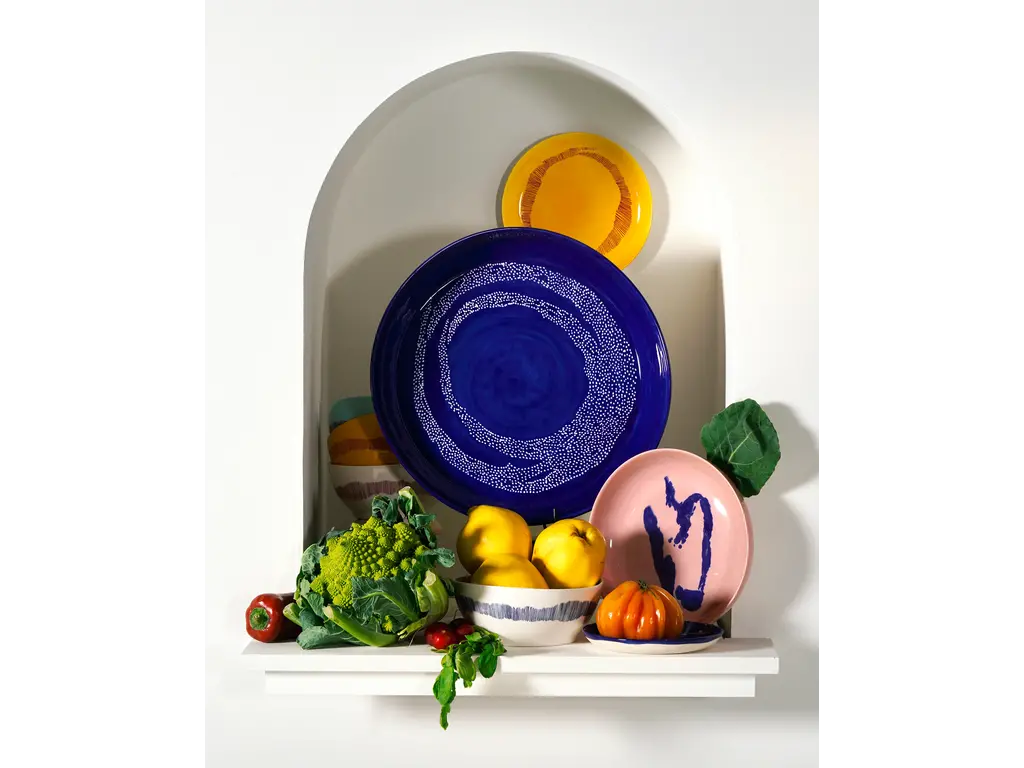 Dit witte serveerbord met een steengladde afwerking en speelse blauwe penseelstreken tilt het alledaagse naar een hoger niveau. Het straalt vreugde uit en belichaamt perfect de levendige, expressieve stijl waar de Feast collectie van Ottolenghi voor staat.