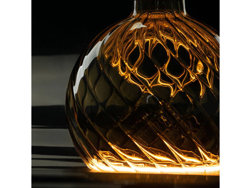 namelijk langs de onderrand van de lamp in plaats van de gewoonlijke spiraal van binnen in de lamp.