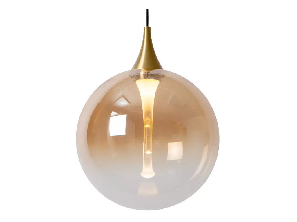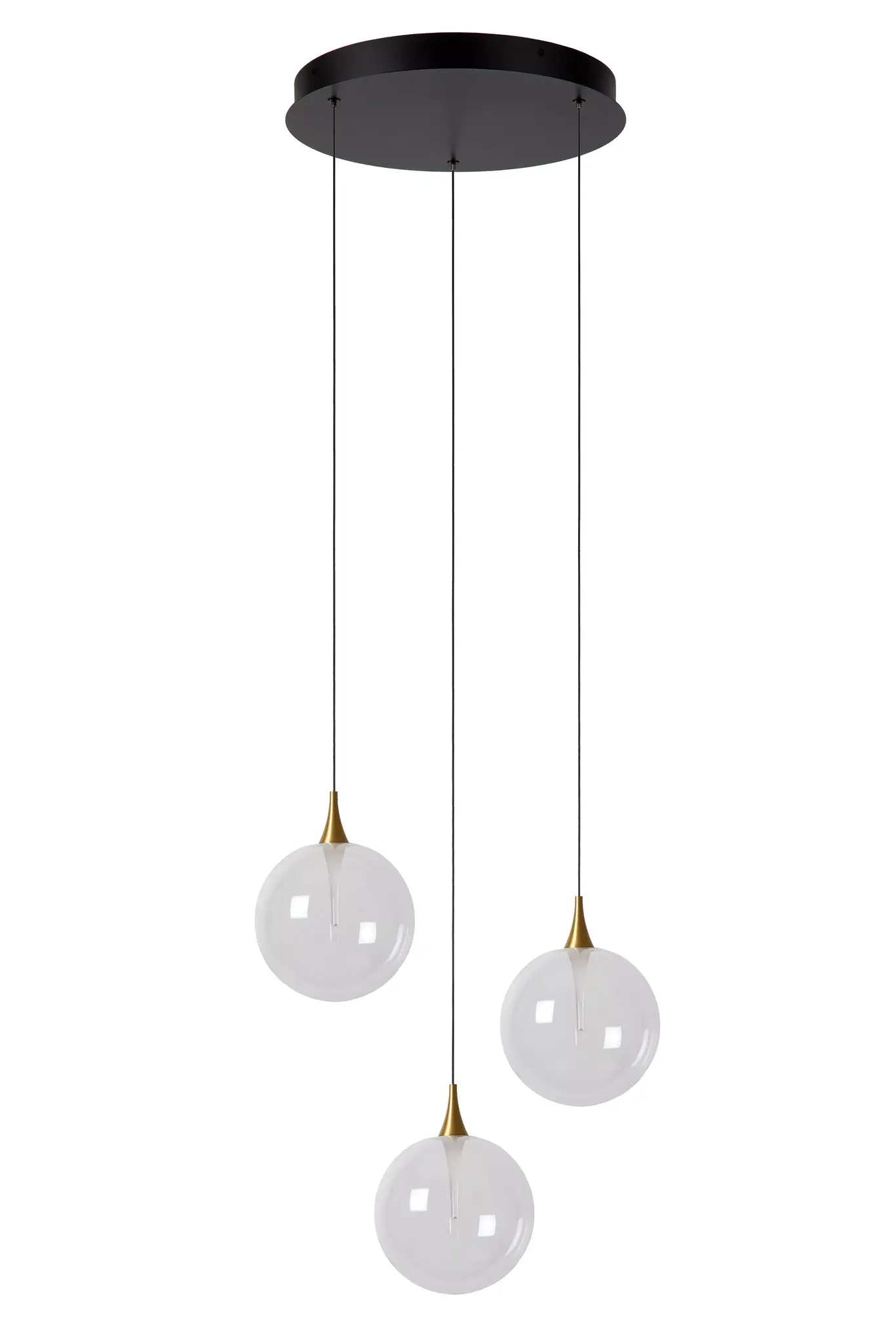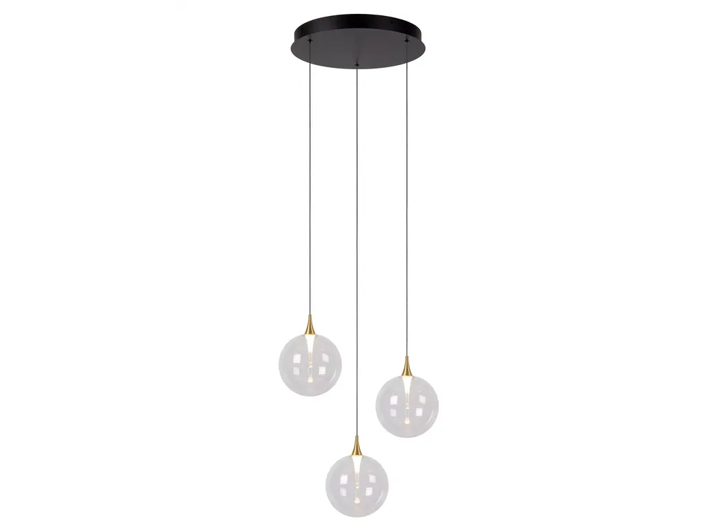 Laat dat maar over aan Gisela, een hanglamp die uit verschillende pendels met heldere, glazen bollen bestaat, die elk verstelbaar zijn in hoogte.