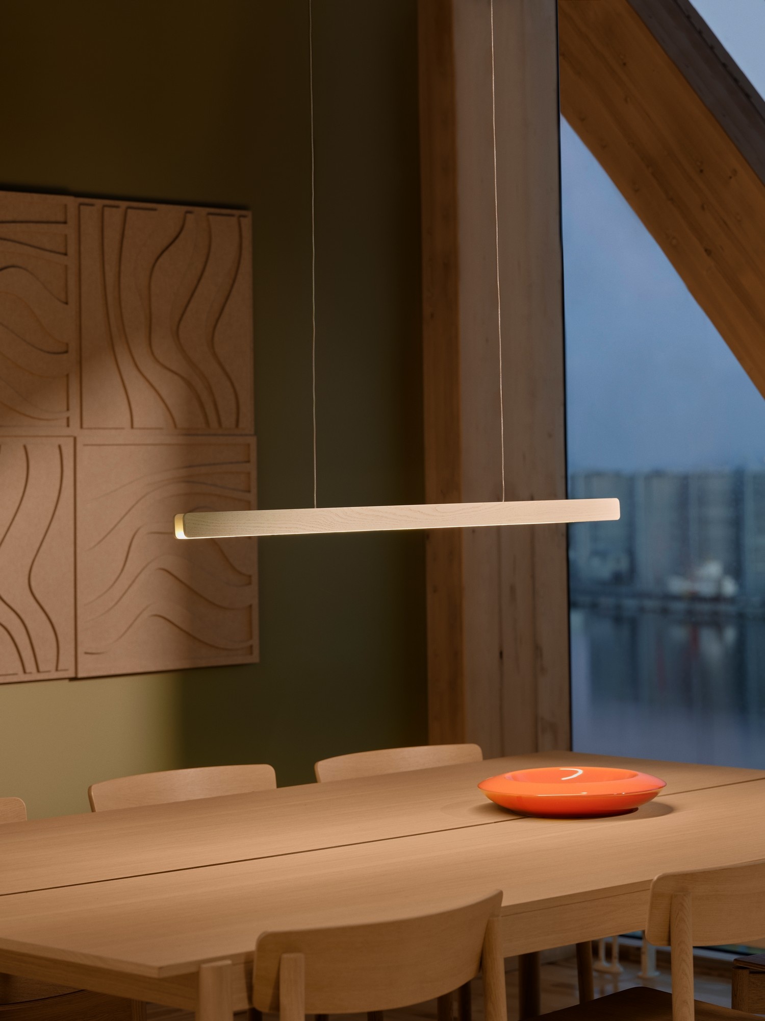 De Ilgas hanglamp is het perfecte voorbeeld van strak Scandinavisch design met een minimalistische uitstraling. Dankzij het slanke profiel en het gebruik van natuurlijk hout past deze lamp moeiteloos in moderne interieurs. Hang Ilgas boven de eettafel of het keukeneiland en creëer de ideale verlichting die je eenvoudig kunt dimmen naar elke gelegenheid.