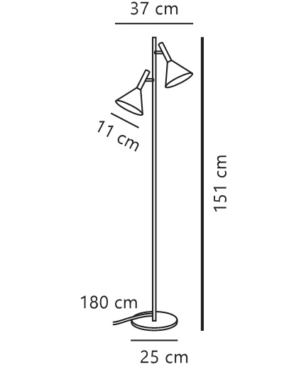 Account aanmakenBreng strak design en functionaliteit samen met de Kelvis vloerlamp. De minimalistische vorm en de twee kegelvormige kappen geven de lamp een moderne, grafische uitstraling.