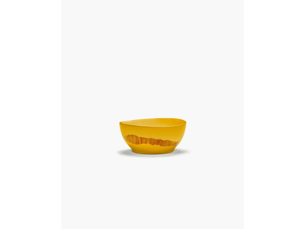 Account aanmakencollectie Feast tableware van Ottolenghi : Dit bord van aardewerk weerspiegelt met zijn zonnige gele kleur en rode penseelstreken de positieve sfeer waar de Feast collectie om bekend staat. Deze kommetjes zijn in verschillende maten en designs beschikbaar en vormen een eclectisch geheel.
