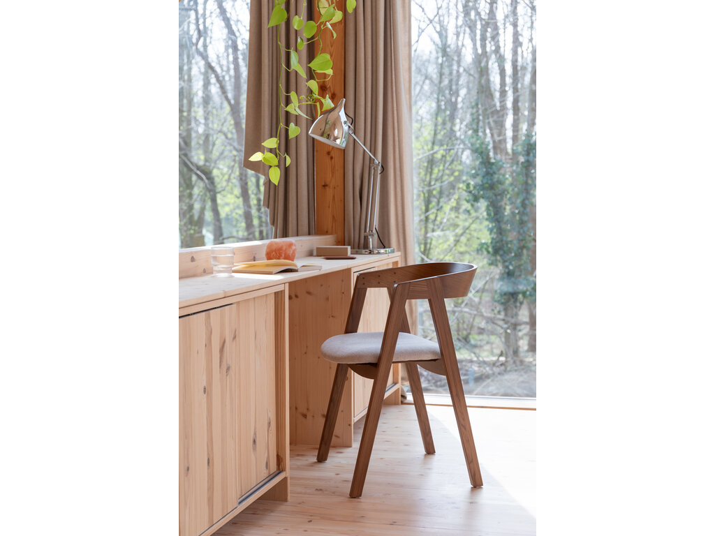 Account aanmakenBen jij ook mad about the Mads? Kan bijna niet anders. Dit stijlvolle meubel brengt namelijk moeiteloos een gezellig gevoel in de eetkamer. De poten van massief essenhout gaan naadloos over in de perfect gebogen rugleuning. Dit zorgt samen met de gestoffeerde zitting voor een heerlijk comfortabele zit. Als kers op de taart geeft de combinatie van de lichte stof met de diepe walnootkleur een mooi contrast.