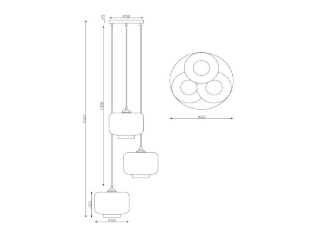 - Afmetingen 3x E27 lijn : Ø46 cm \ H.159,7 cm