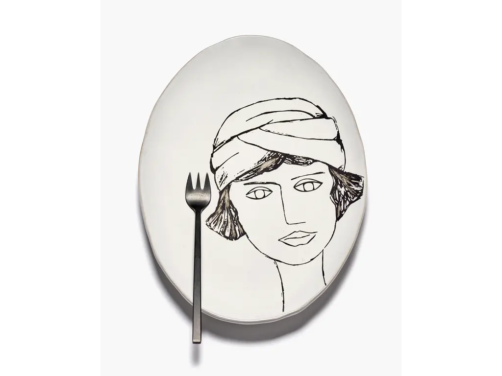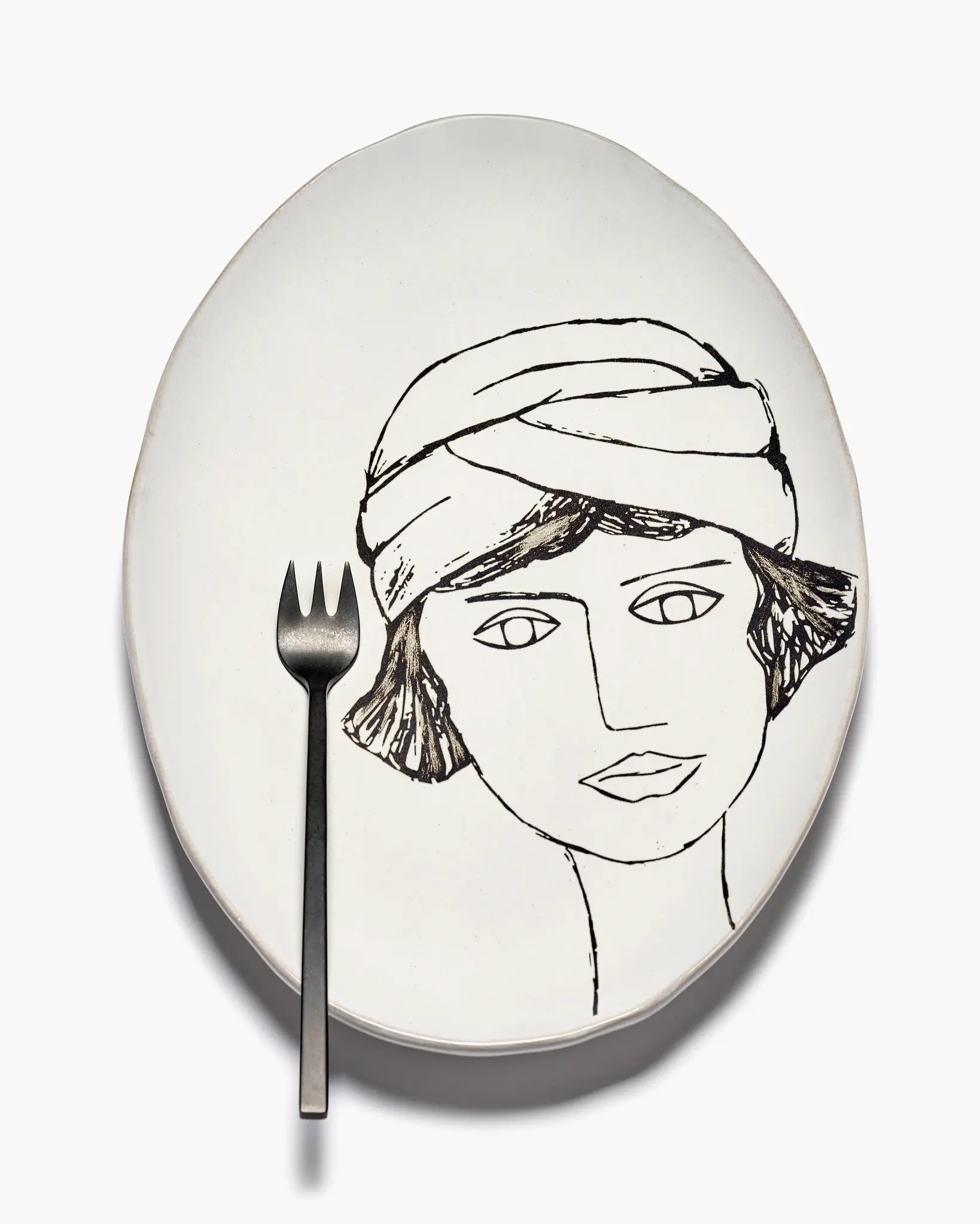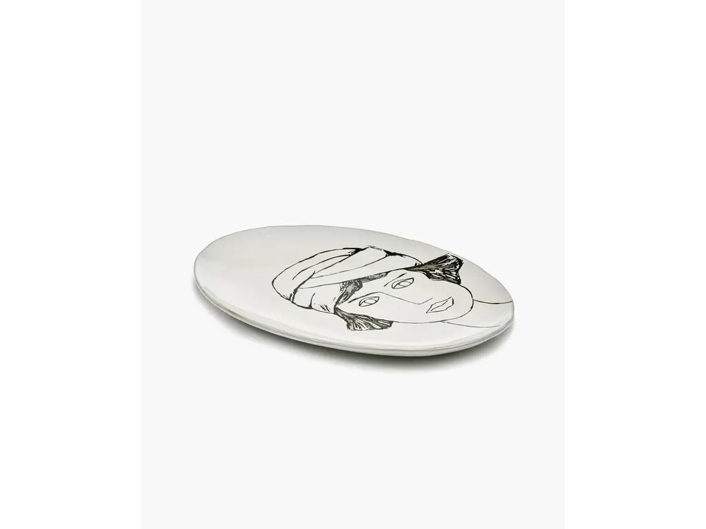 Account aanmakenDeze ovale borden van steengoed getuigen van het vakmanschap van de maker Marie Michielssen. Deze borden zijn met de hand geboetseerd en zorgvuldig afgewerkt met een dualiteit van wit en zwart glazuur. Marie eert alle moeders met de illustratie op het bord, het middelpunt van de La Mère-collectie.