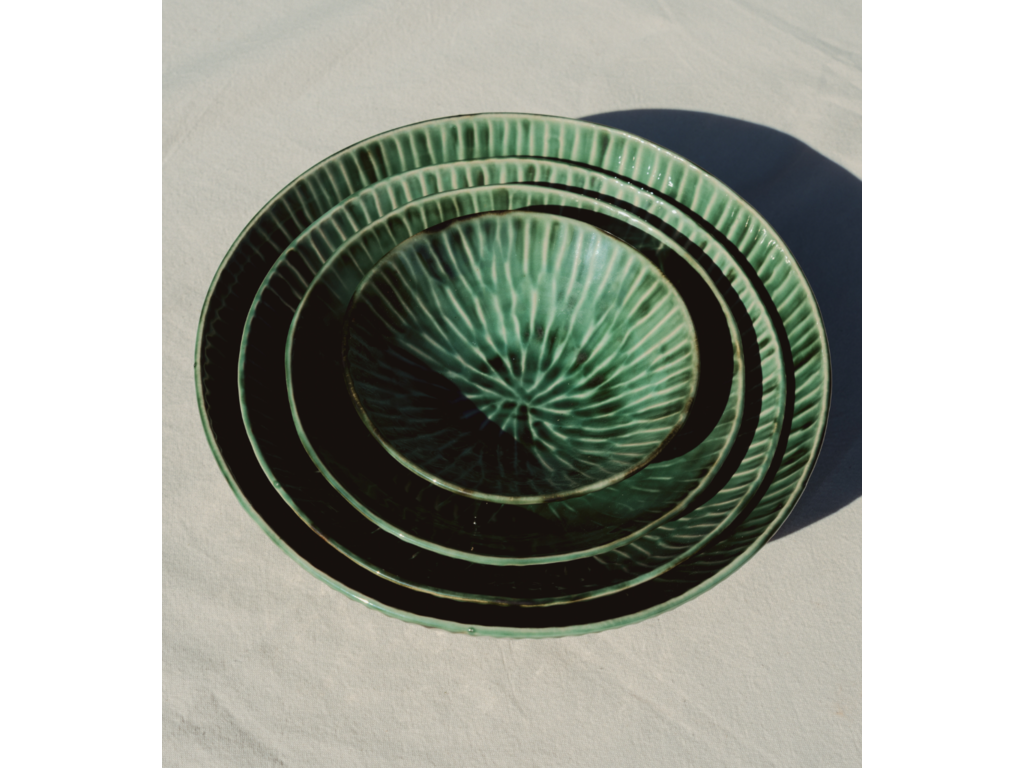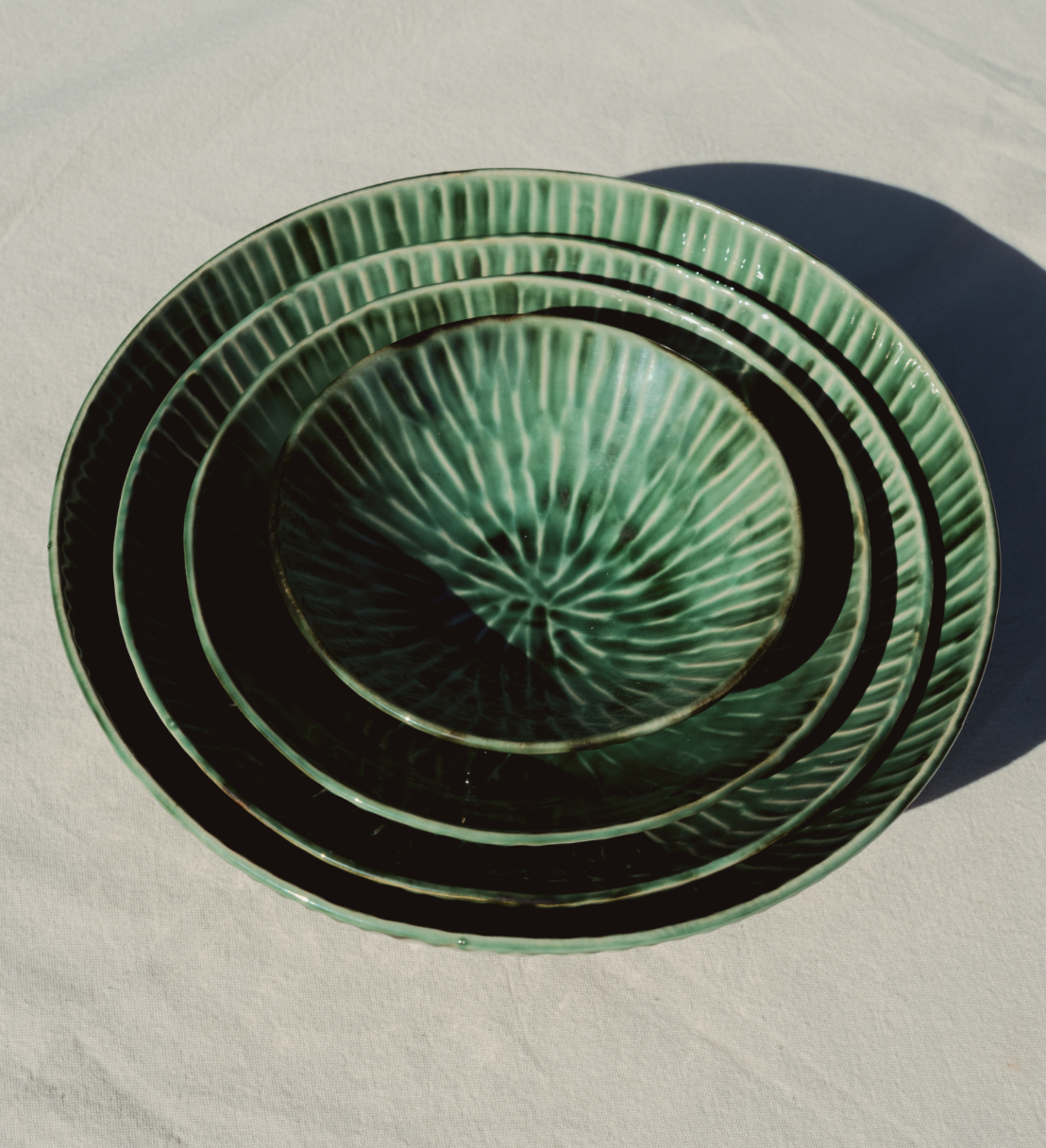 Voor haar nieuwste boek ‘Eén Pan’ keerde Pascale Naessens niet alleen terug naar de schrijftafel, maar ook naar haar vertrouwde keramiekatelier. Het resultaat: de exclusieve ‘Verde Lanza’ collectie, met de hand ontworpen door Pascale en nu exclusief geproduceerd door Serax.