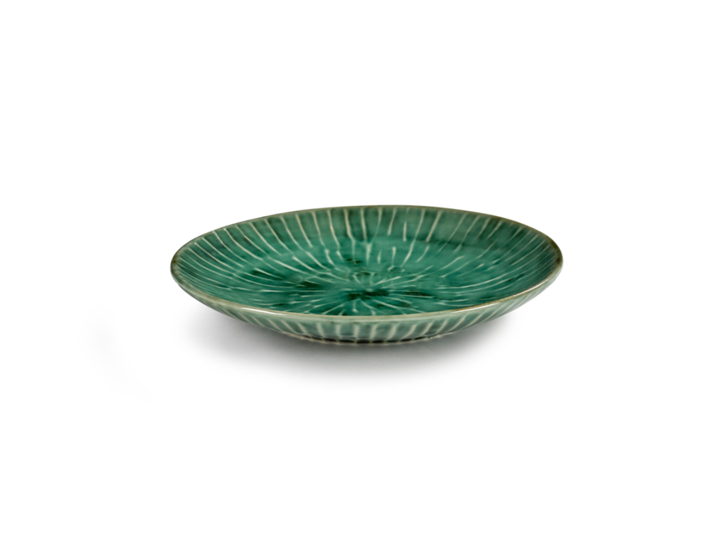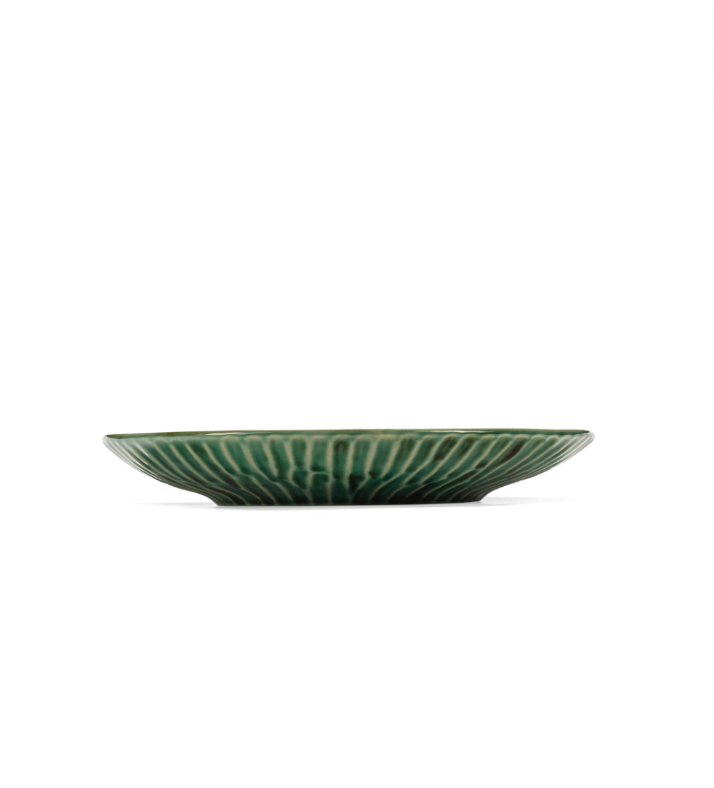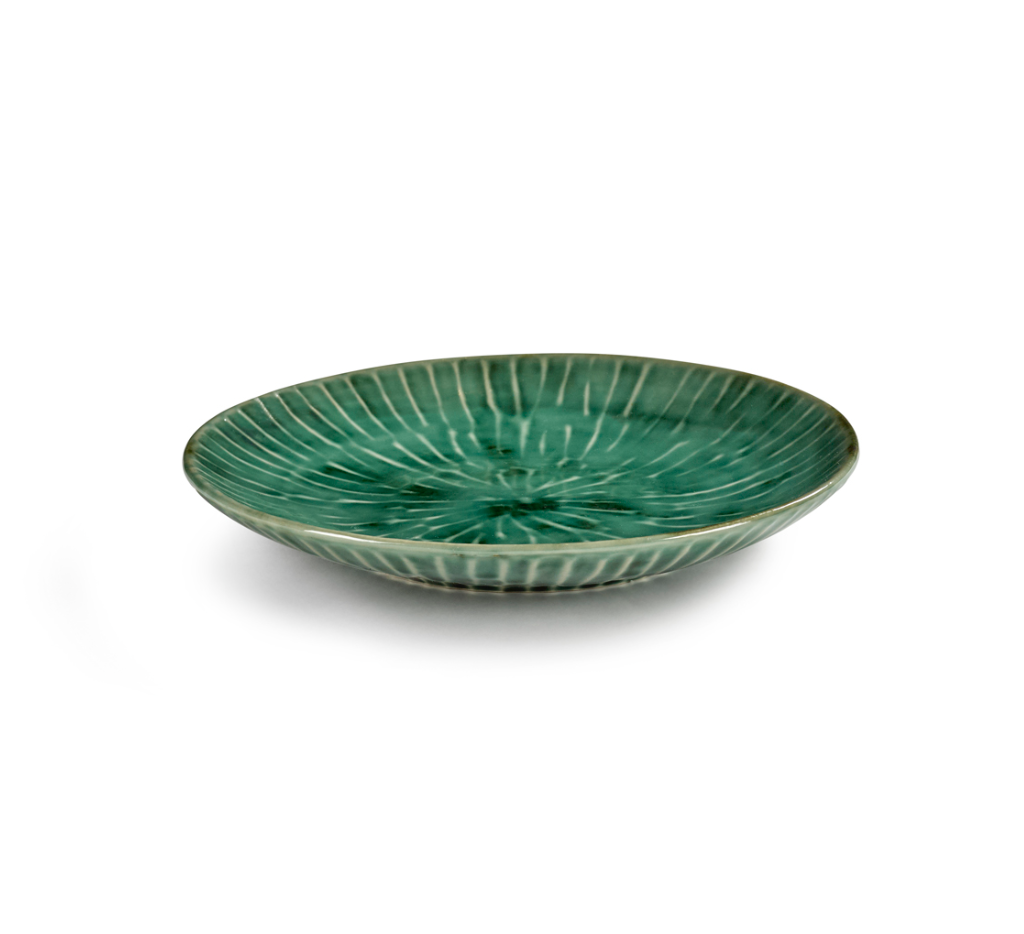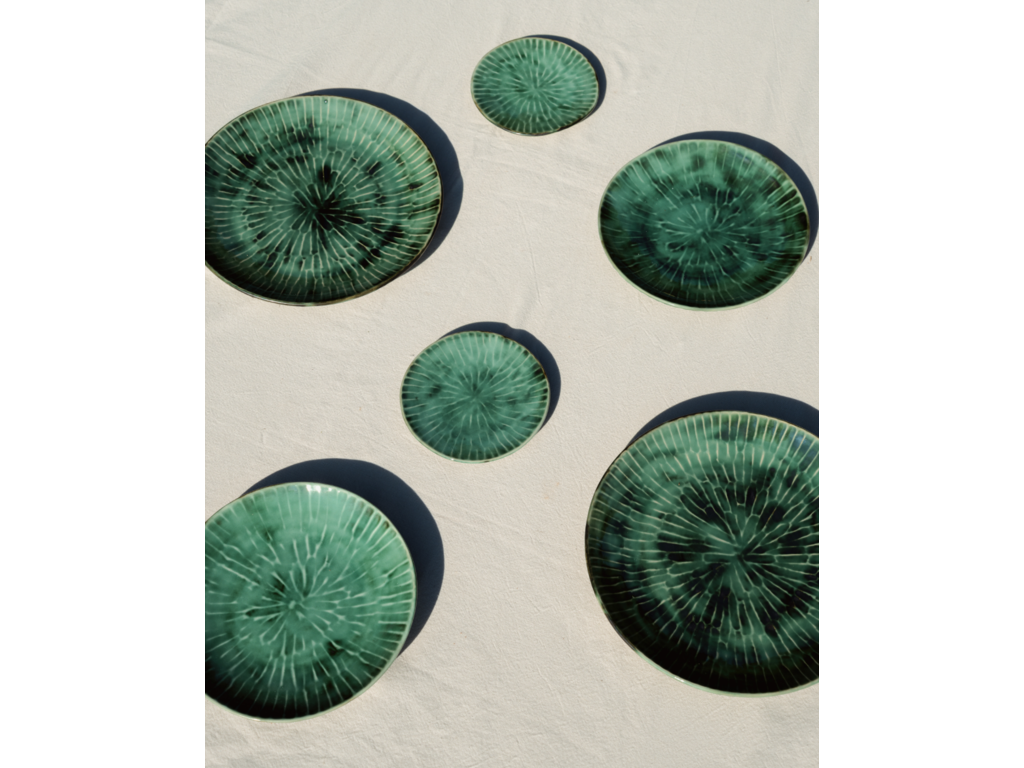 De naam verwijst naar Lanzarote, het eiland waar Pascale vaak verblijft. Ze liet zich inspireren door het typische zonverbleekte groen van houten deuren en ramen, en het weinige groen dat fel contrasteert met het zwarte, bijna buitenaardse landschap. Die unieke kleur, die prachtig combineert met alles wat lekker is, komt nog meer tot leven door de schelpachtige textuur die Pascale met haar vingers aanbracht.