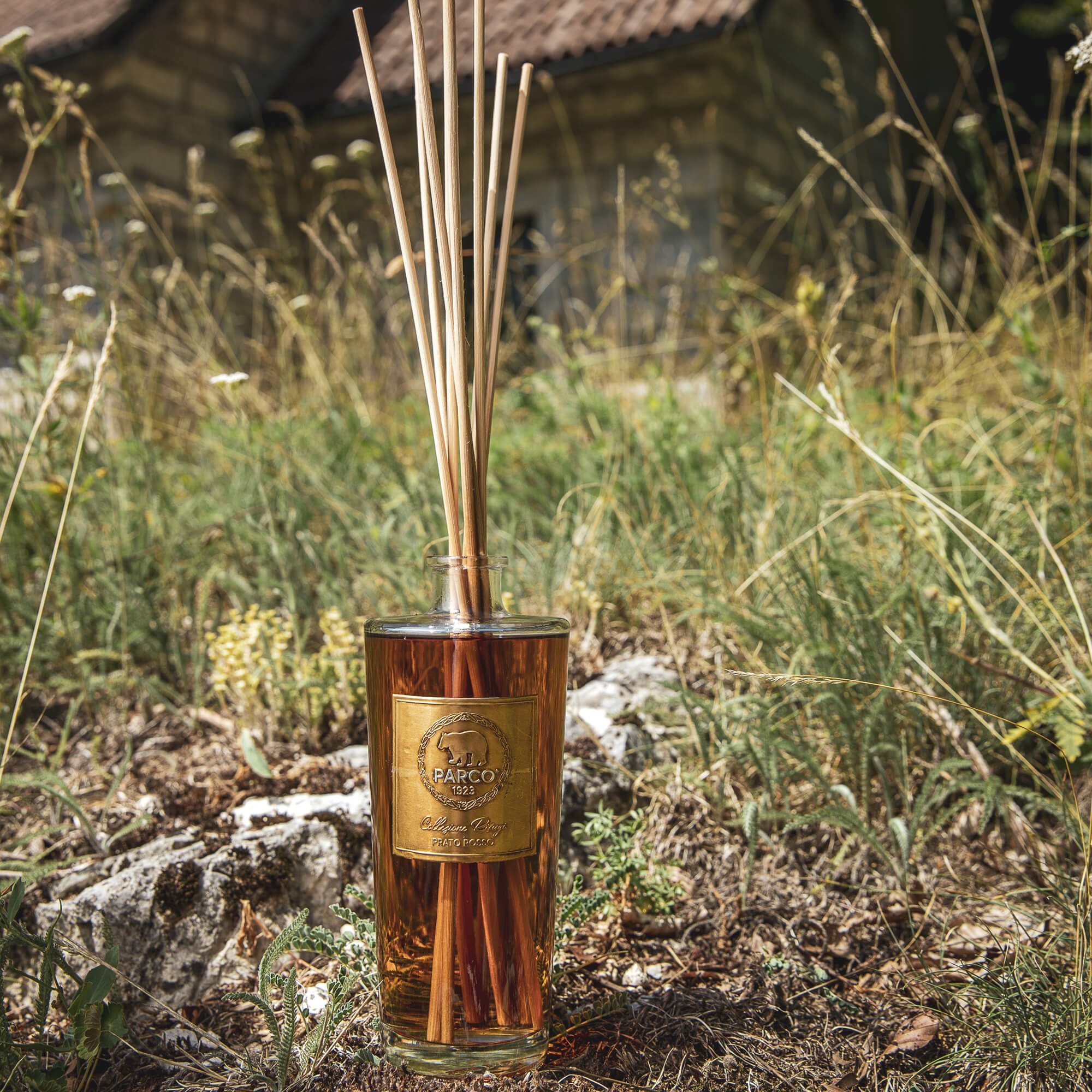 Gebruik: Laat de houten stokjes bij eerste gebruik 2 uur in de vloeistof weken en draai ze daarna om. Afhankelijk van de ruimte en gewenste intensiteit 1–2 keer per week draaien. Plaats bij voorkeur op lichaamshoogte in een doorgang voor optimale geurverspreiding.