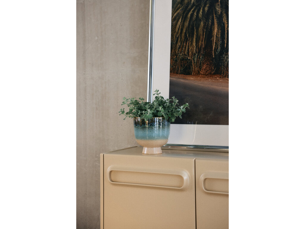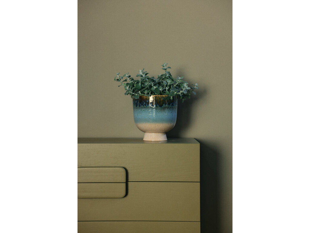 Breng een koele, rustgevende sfeer in je interieur met deze ijsblauwe keramische bloempot. Gemaakt van hoogwaardig geglazuurd keramiek en afgewerkt met een unieke reactieve glazuurlaag, waardoor elke pot een eigen karakter heeft. De zachte blauwtinten stralen een serene, winterse uitstraling uit en passen perfect in moderne interieurs.