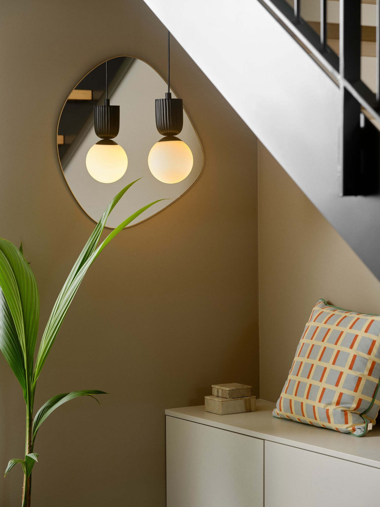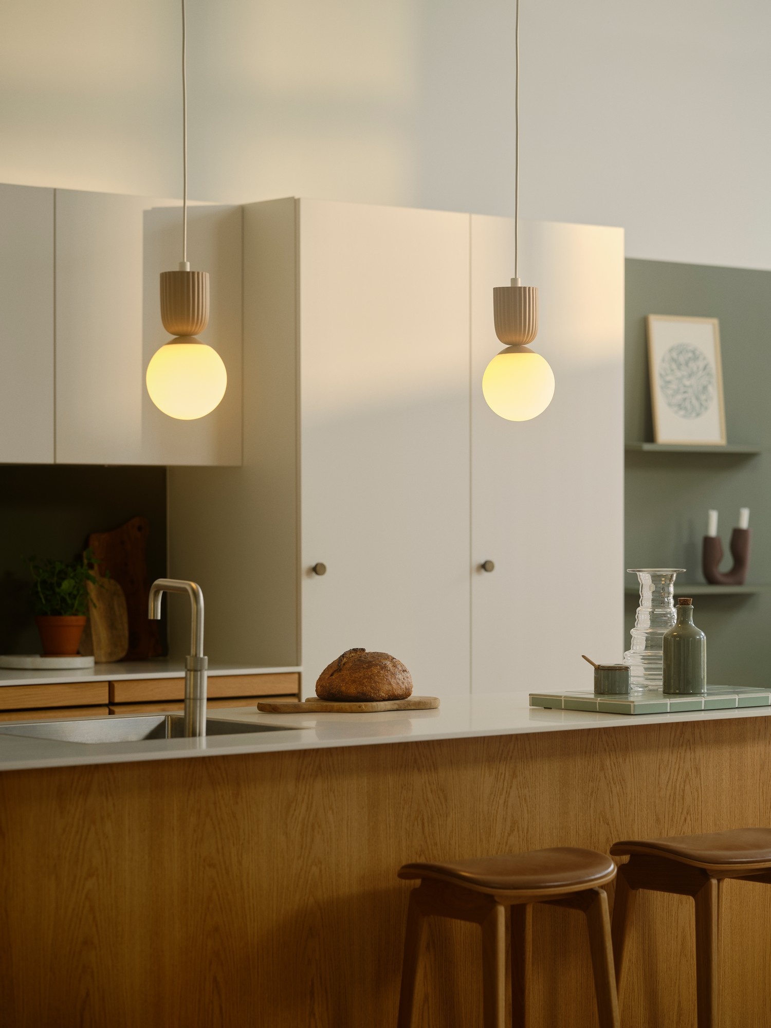 Sadie heeft een organische en harmonische vorm waarbij de grote opalen glaskoepel de lichte, gegolfde ophanging prachtig aanvult. Het opaalglas zorgt ook voor een niet-verblindende hanger die alleen of in een cluster van meerdere bij elkaar mooi is.
