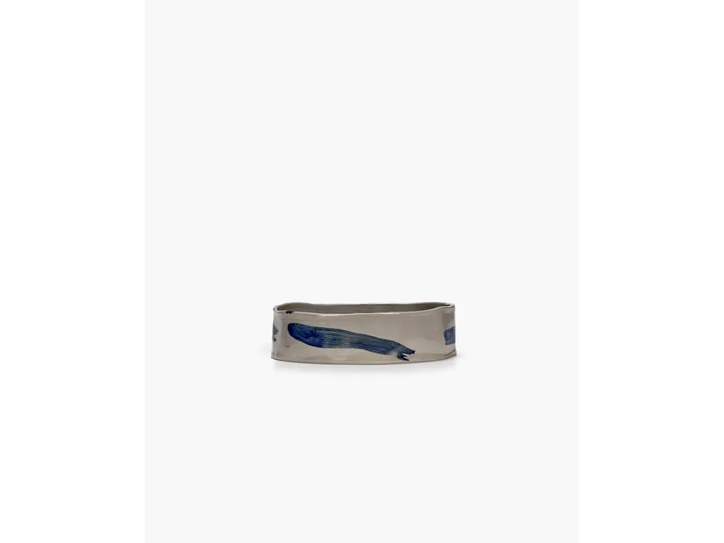 Beoordeel Ovale diepe serveerschaal beige - blauw Sophia