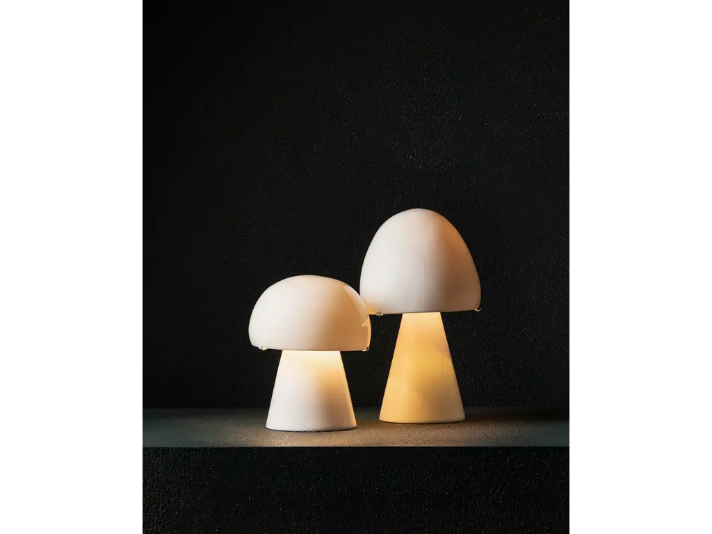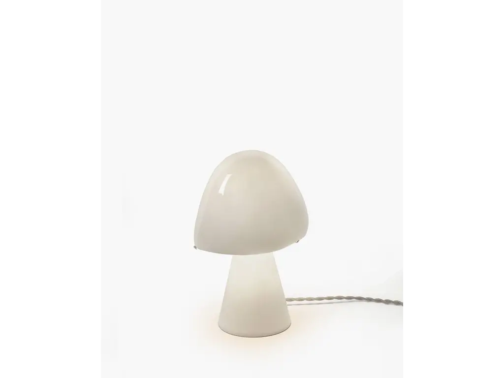 Account aanmakenDe witte tafellamp 'Joe n°2' belichaamt de organische esthetiek van de jaren 1960, geïnspireerd door de vormen van paddenstoelen. Deze lamp straalt een zacht licht uit vanuit zowel de voet als de lampenkap. Het goudkleurige stoffen snoer met schakelaar voegt een vleugje luxe toe aan deze tijdloze, nostalgische lamp.