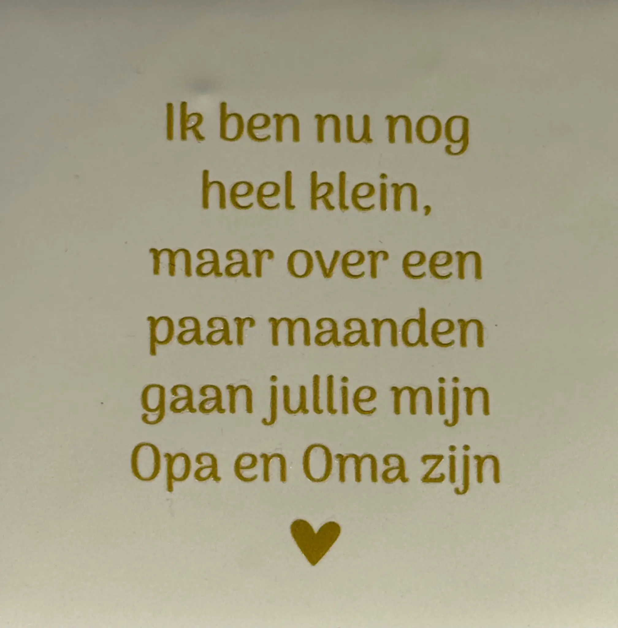 Met de tegeltjes uit onze Baby-collectie vier je de komst van nieuw leven – of het nu gaat om een pasgeboren baby, een zwangerschap of een kleine op komst. Lief, teder en soms met een knipoog: deze tegeltjes zijn het perfecte cadeau voor kersverse ouders of als blijvende herinnering aan een bijzonder moment. Een prachtig aandenken voor op de babykamer, de commode of dat ene speciale hoekje in huis.