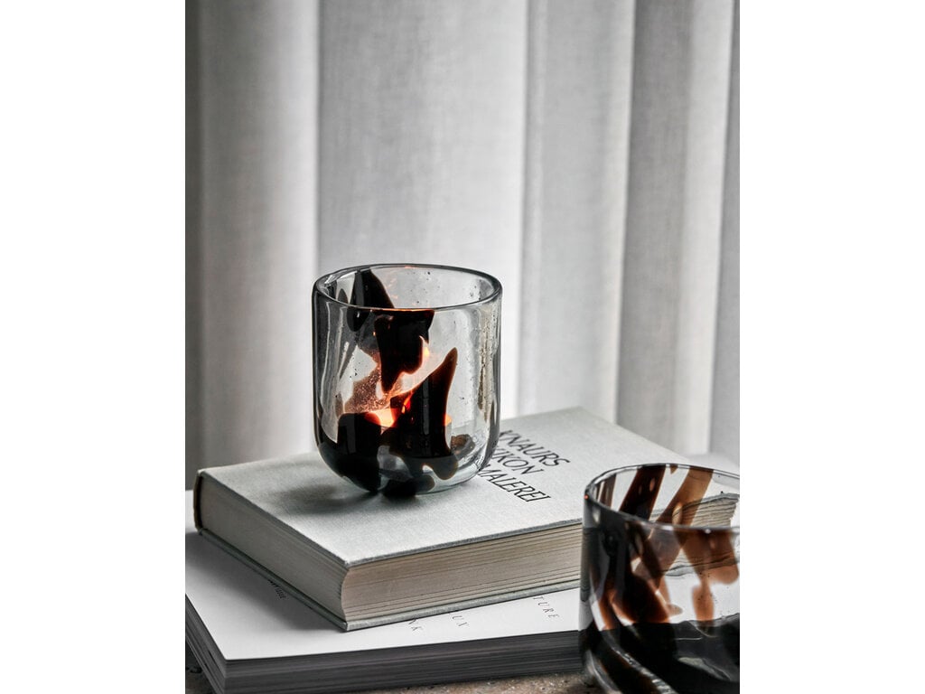 Account aanmakenMet deze handgemaakte theelichthouder creëer je een warme en uitnodigende sfeer in elke kamer. Gemaakt van transparant glas met een donkerbruin patroon, voegt het unieke ontwerp een vleugje charme en elegantie toe. De ingewikkelde kleurwervelingen werpen prachtige schaduwen,