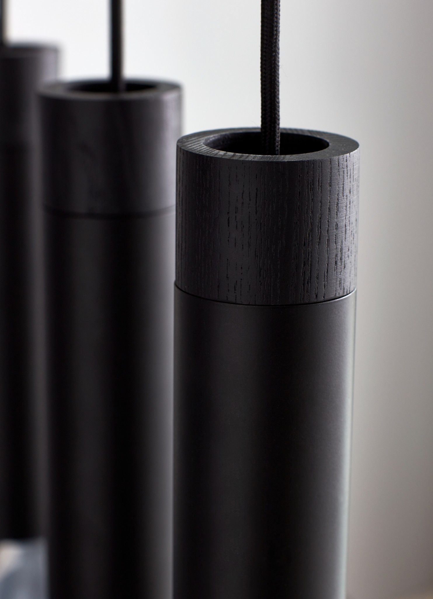 De Tilo hanglamp in zwart metaal en zwart gelakt essenhout is de perfecte hanglamp boven de lange eettafel of het kookeiland, omdat alle vijf de lampenkoppen een goed functioneel neerwaarts licht geven.