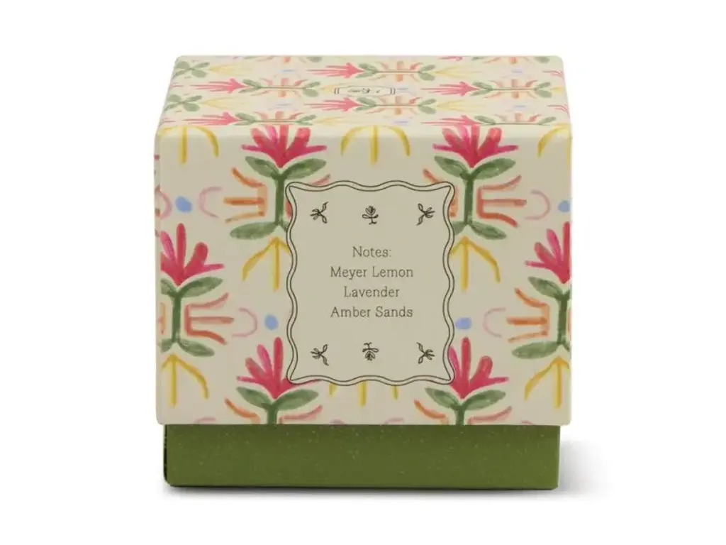 - Materiaal: Glazen houder gevuld met een luxe sojawaxblend, geurig en voorzien van 1 katoenen lont. Wordt geleverd in een stijlvolle papieren doos.
