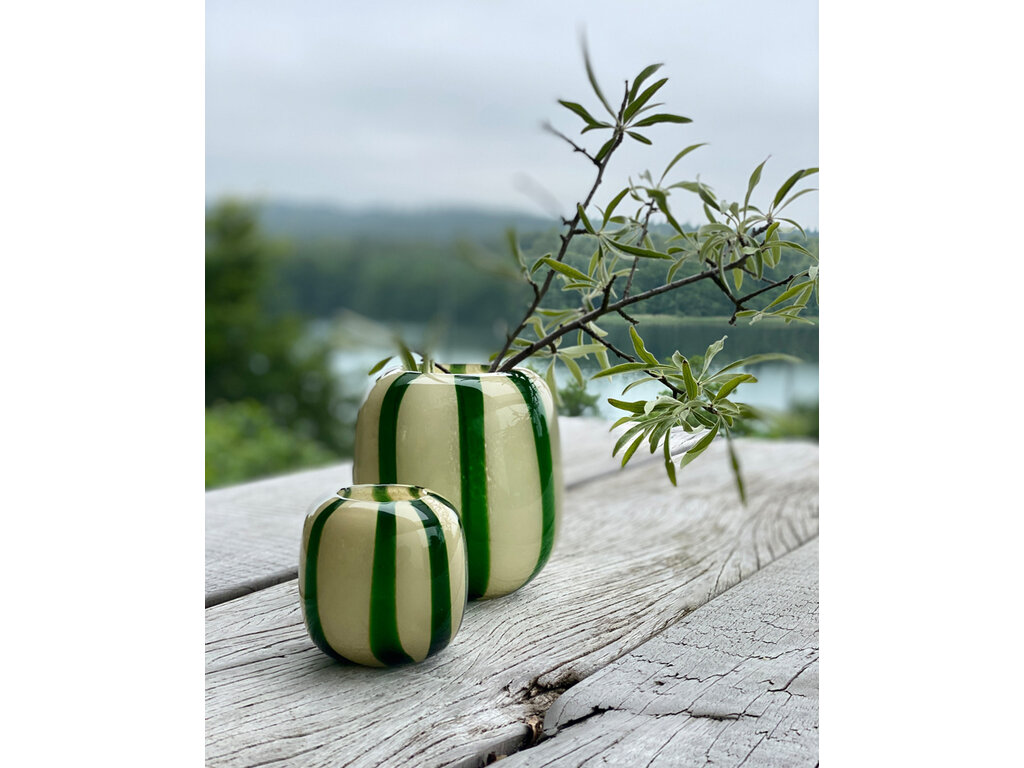 Account aanmakenVoeg charme toe aan uw huis met deze mondgeblazen snoepstreepvaas.