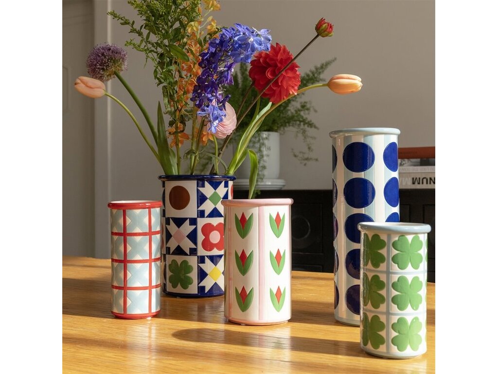 Laat je interieur stralen met de Patch Vaas, geïnspireerd op vintage folkquilts. De warme kleuren en handgeschilderde details geven elke vaas een unieke uitstraling vol karakter en vakmanschap.