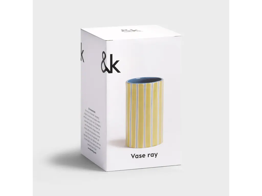 Breng stijl en karakter op tafel met deze prachtige groen-blauw gestreepte vaas! Het handgeschilderde patroon is speels en uniek – geen enkele vaas is precies hetzelfde. Gebruik hem als blikvanger met een bos verse bloemen, een paar sierlijke takken of zelfs om je keukenaccessoires stijlvol in op te bergen.