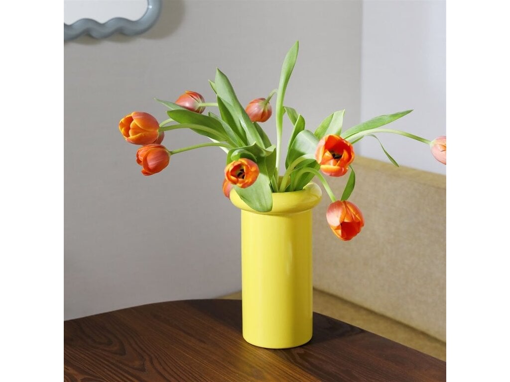 De Tulband vaas springt meteen in het oog dankzij haar ronde, volle vorm. Het speelse en robuuste design geeft deze vaas een uniek en eigentijds karakter. In deze zonnige gele kleur brengt ze direct warmte en vrolijkheid in je interieur.