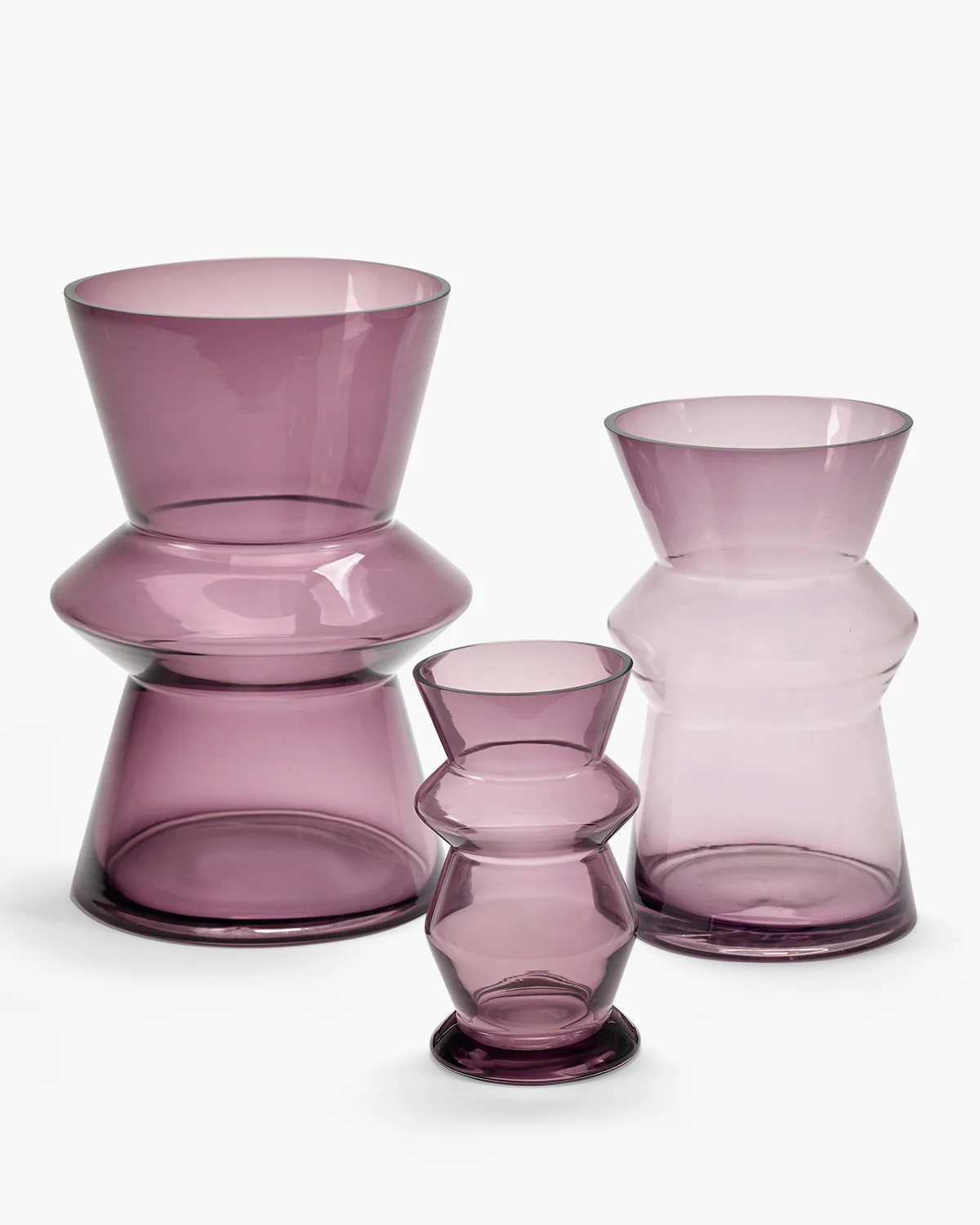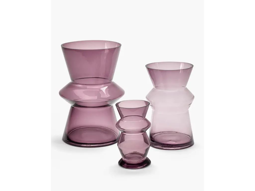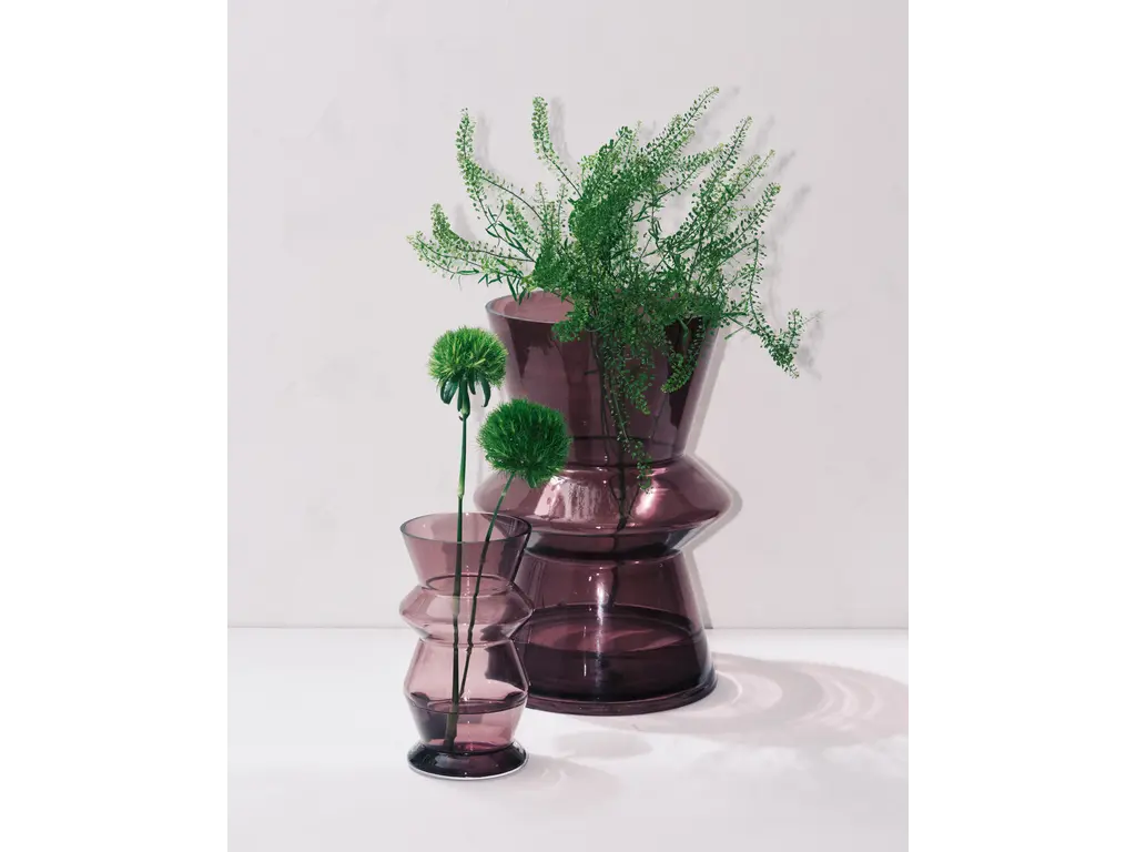 De Marie-Ann vaas van designer Marie Michielssen vertaalt een archetypische vorm naar lichtpaars glas. De overgang van robuust rood aardewerk naar transparant en verfijnd glas zorgt voor een krachtig contrast binnen de collectie. Het resultaat is een subtiel, maar expressief object dat elegantie en karakter uitstraalt.